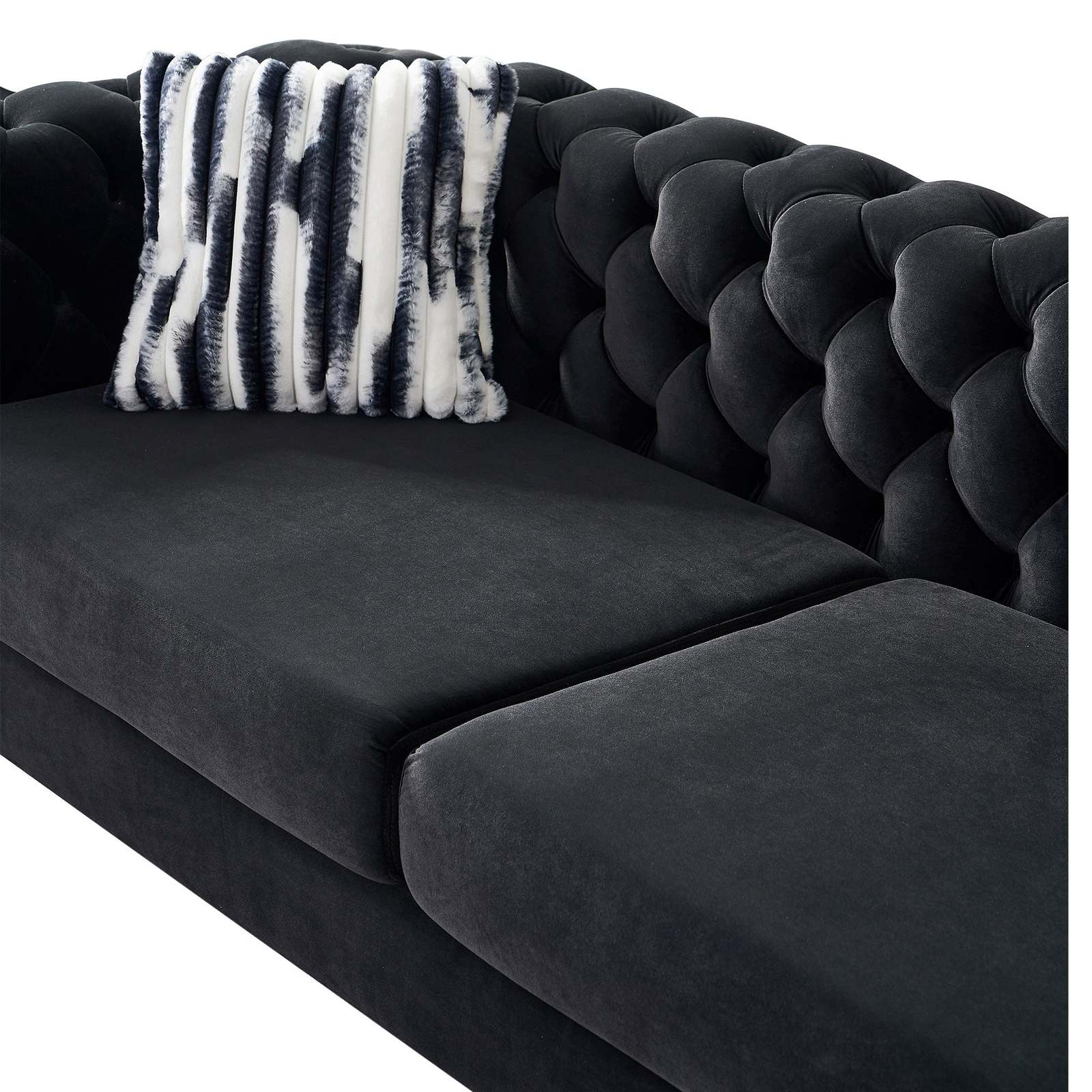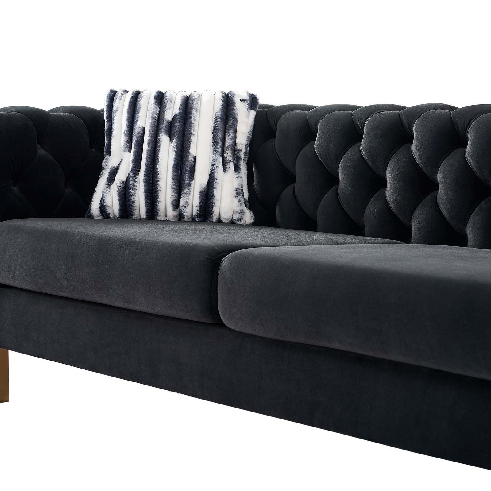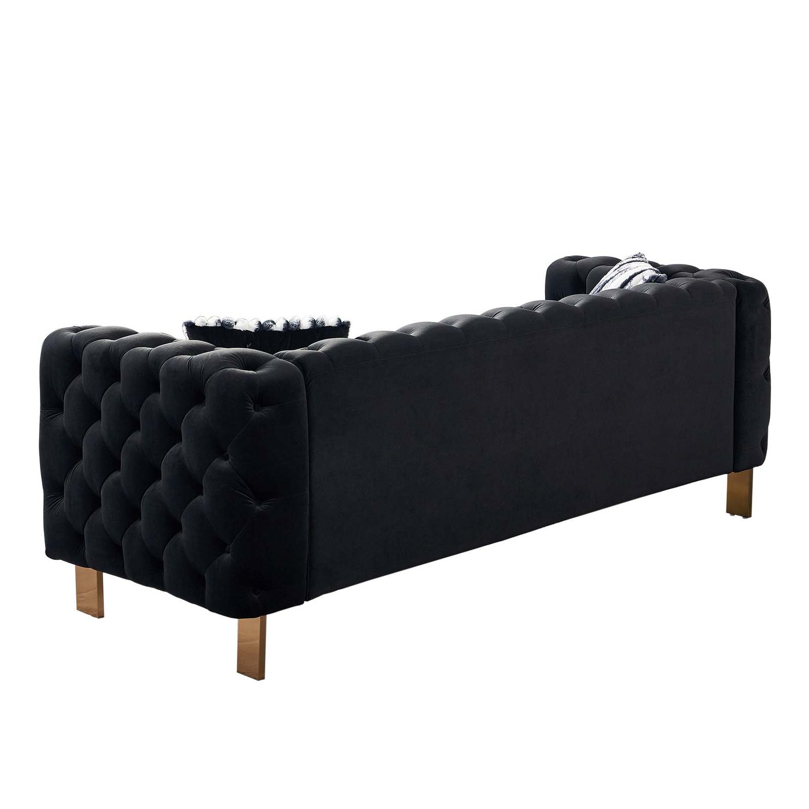 Black Modern Tufted Velvet Chesterfield Sofa Couch for Living Room