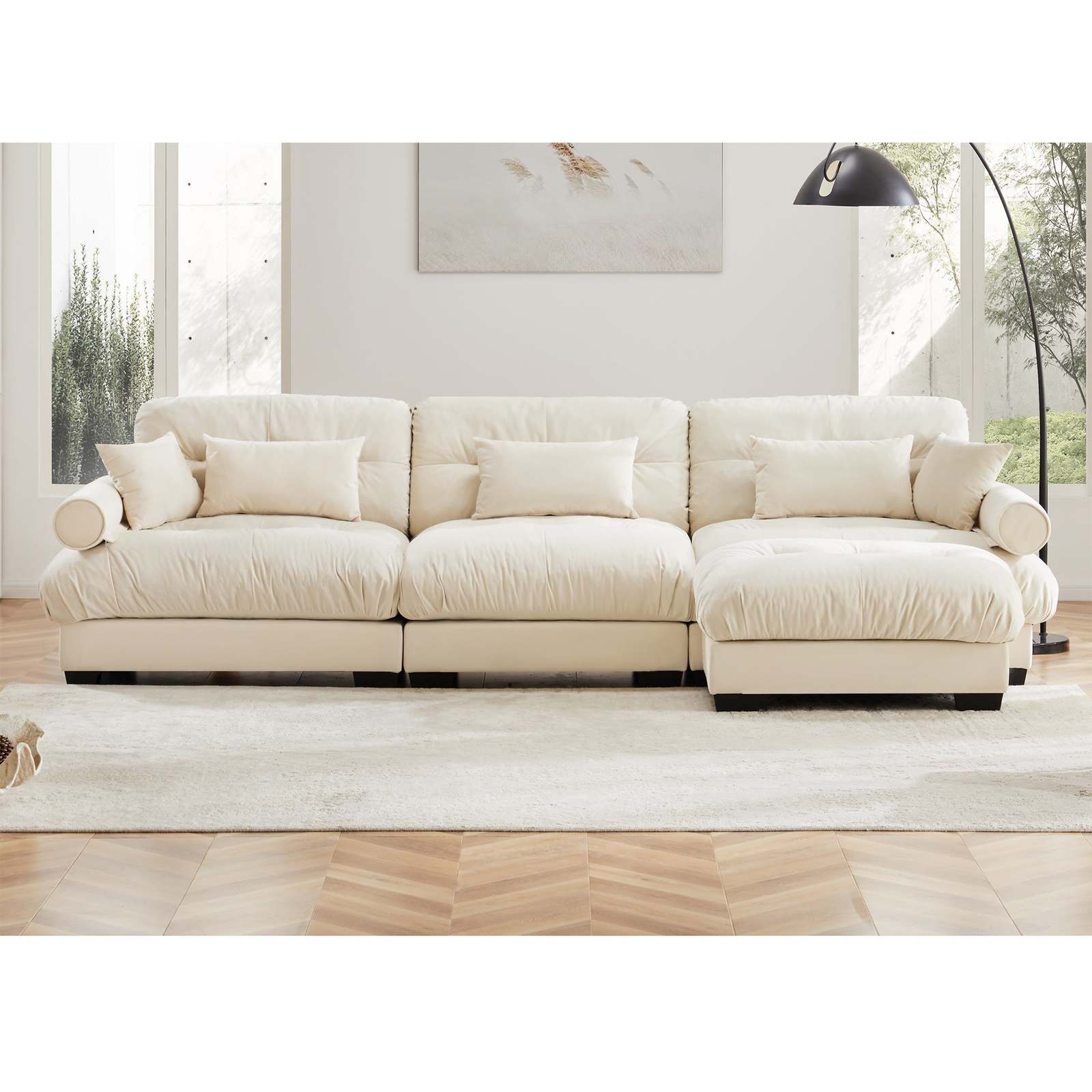 Oversized Velvet Modular Sectional Sofa: Cream, Super Comfort, Ottoman