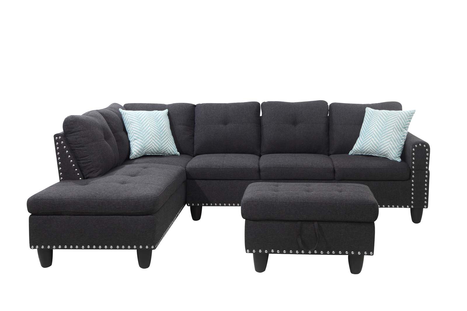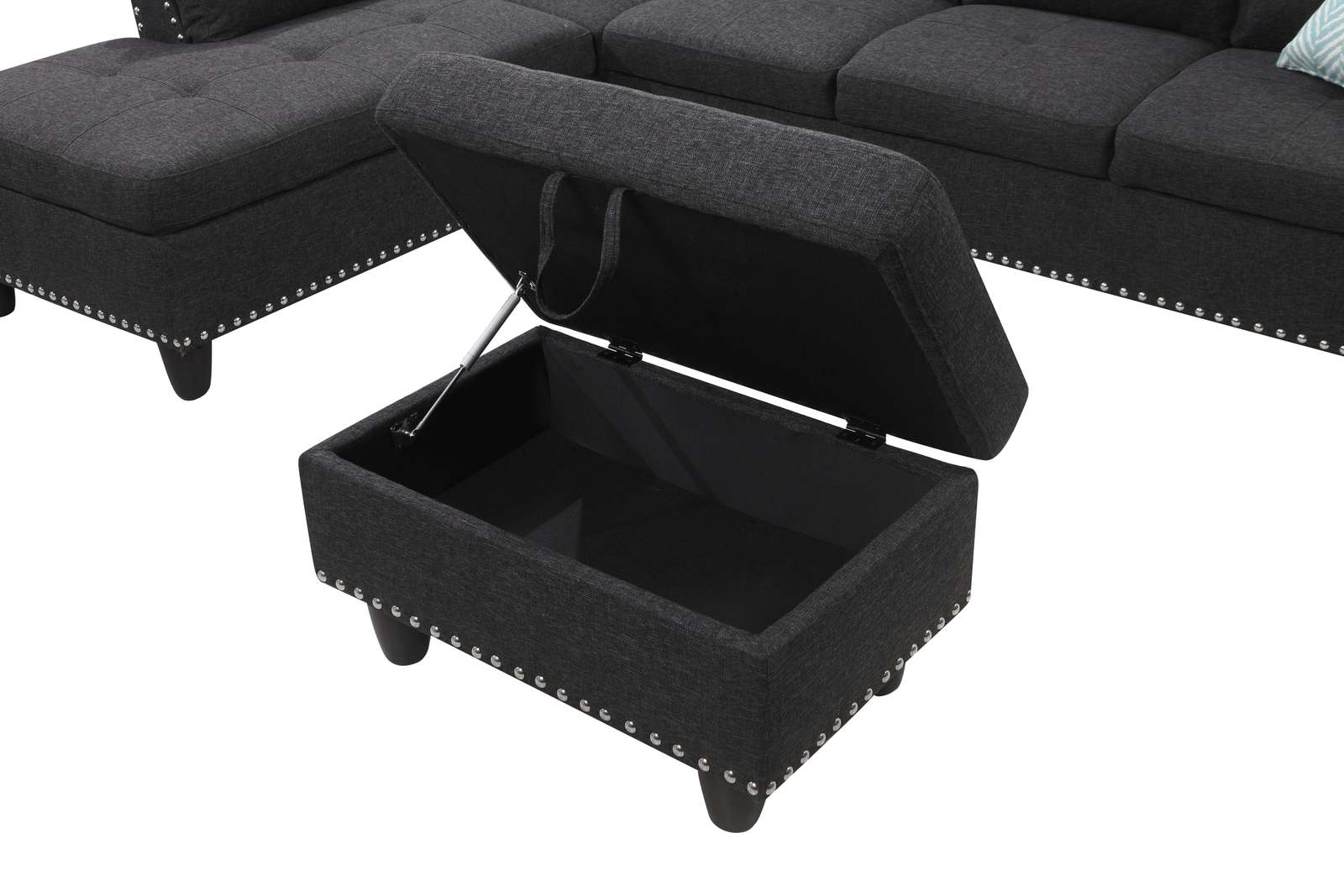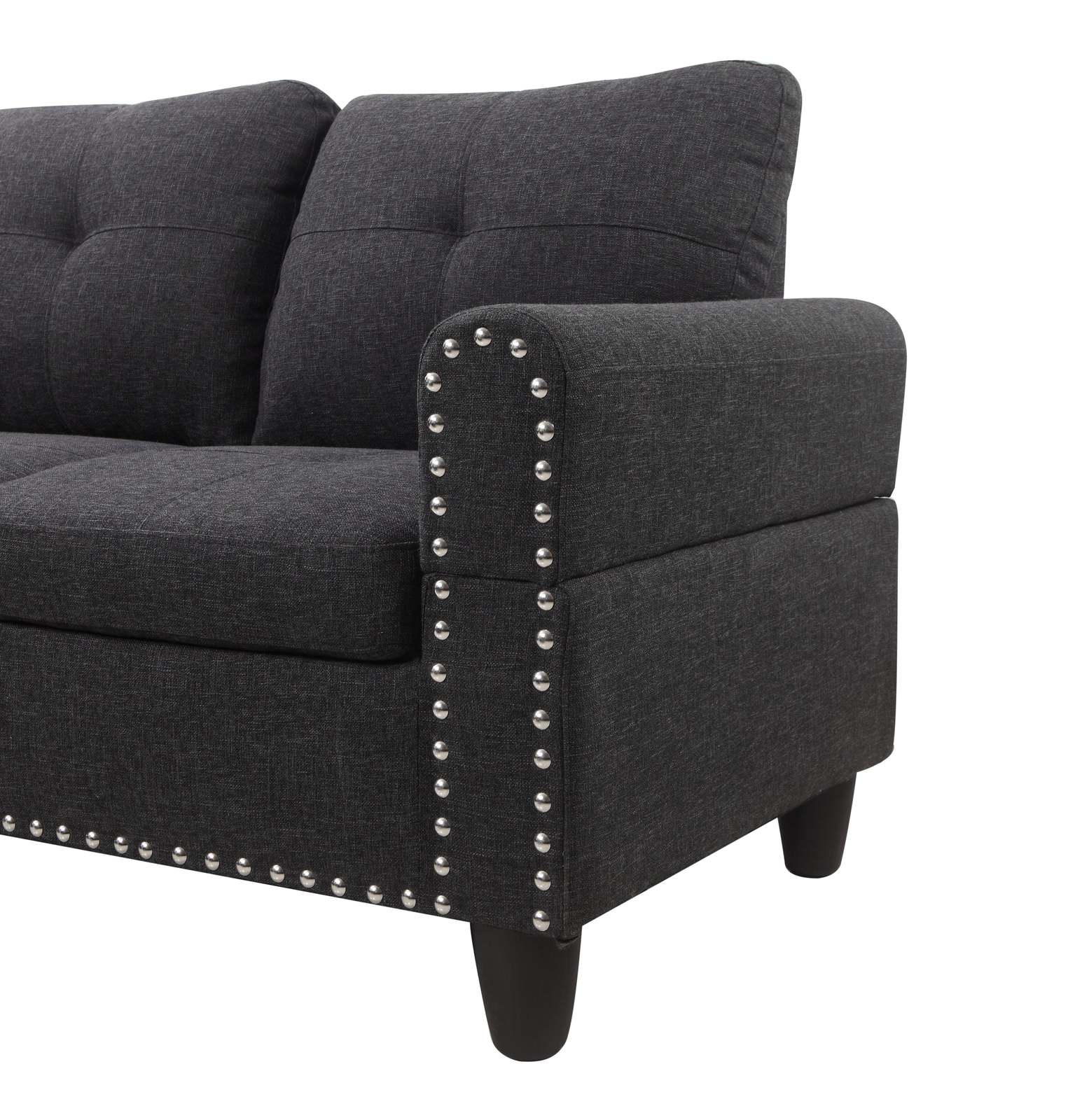 Foam-filled cushions give you plenty of support. Rounded arms, nailhead trim, and subtle tufting in the back add a traditional feel we love. A storage ottoman and two toss pillows are also included