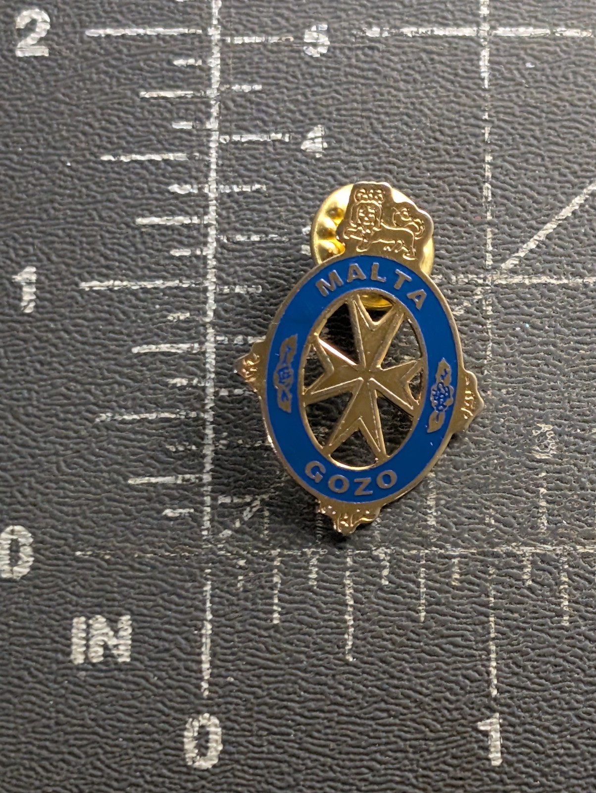 Malta Gozo Maltese Cross Heraldic Enamel Pin European Travel Souvenir Blue Gold
