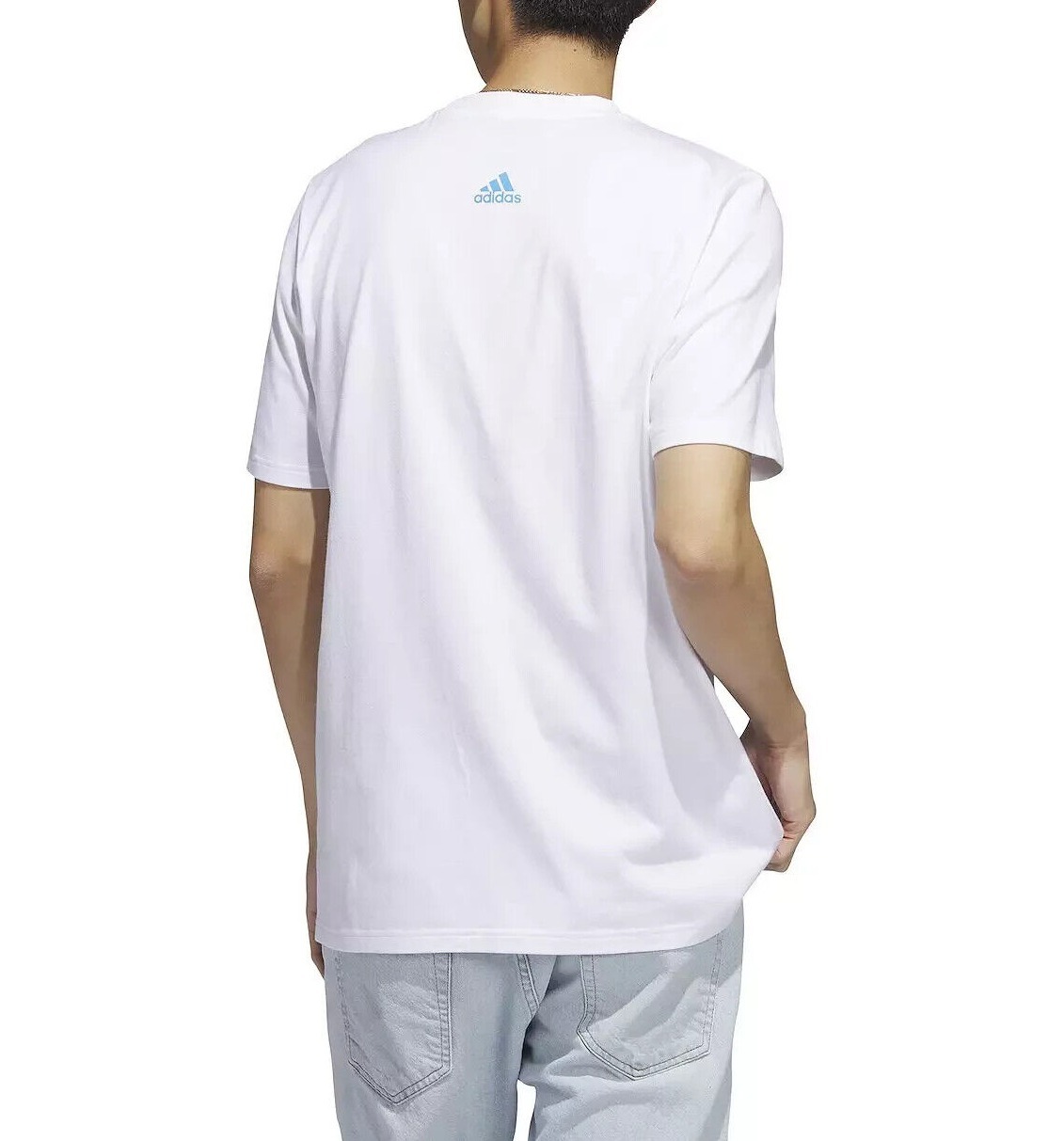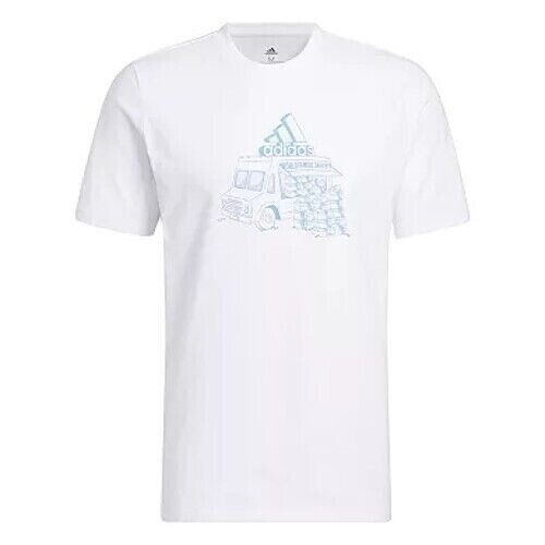 adidas Men's Crewneck Food Truck Graphic T-Shirt White/Pulse Blue-Medium