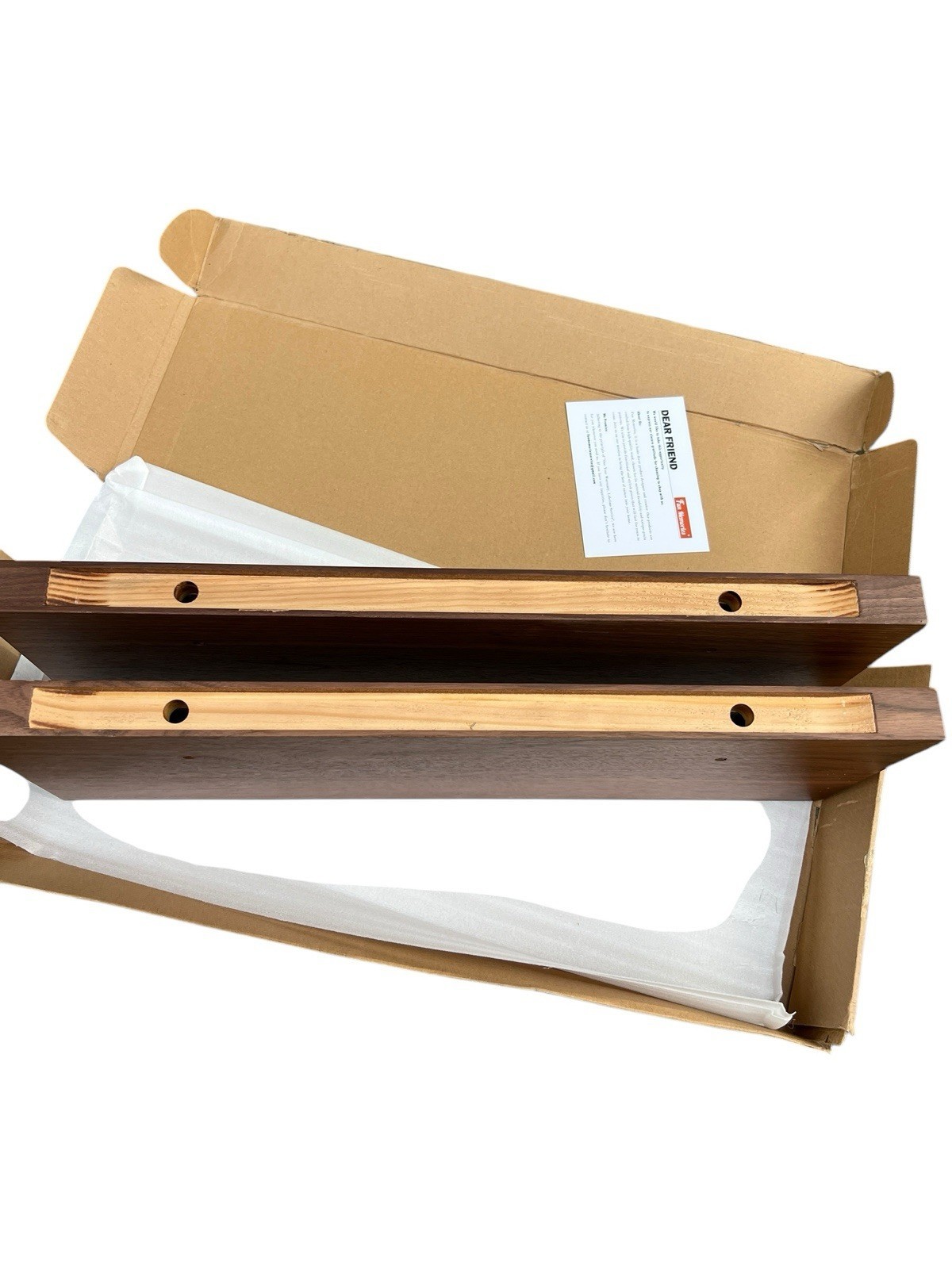 This set of 2 floating shelves for walls, each measuring 8 inches deep and made of solid dark oak, adds a touch of country rustic style to any room in your home. Wall-mounted with hardware included, these shelves are perfect for the bedroom, bathroom, kitchen, living room, or home office. With a simple yet solid design, they are lightweight and easy to assemble, making them a versatile and practical addition to your space. The dark oak finish and solid construction give these shelves a timeless and classic look that complements a variety of decor styles.
