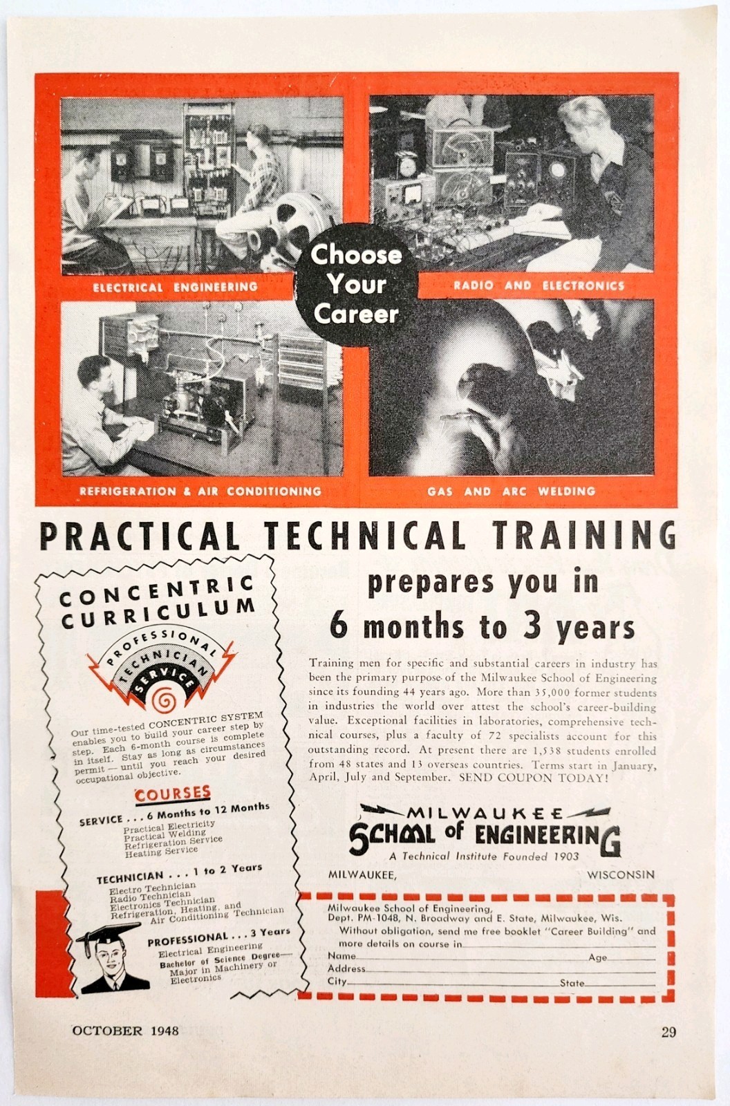 1948 Milwaukee School Of Engineering Advertisement Electronics Vintage 2 E2H2