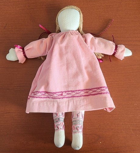 Amish Handcrafted Faceless Doll Embroidered Pink Embroidered Fucsias 13 inch