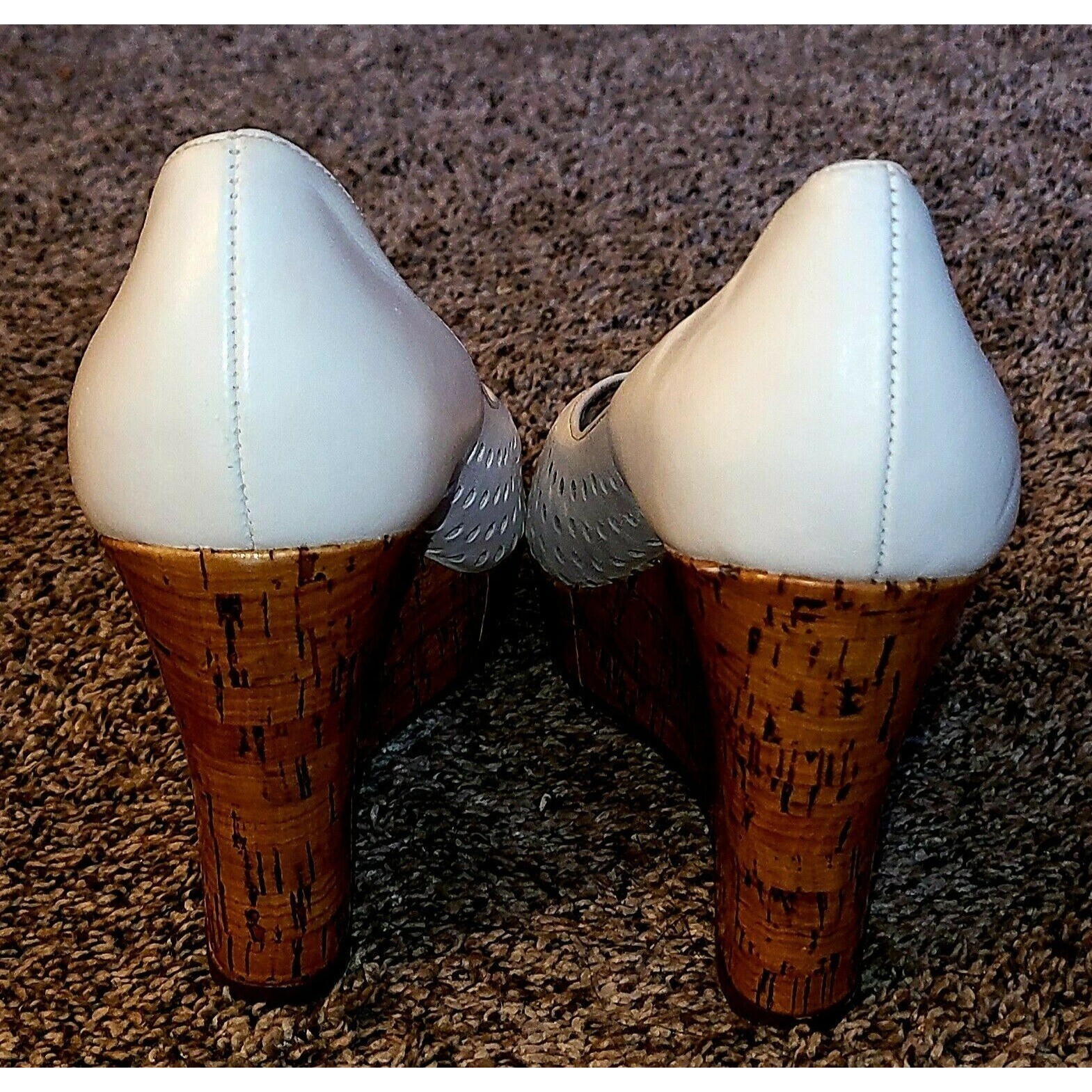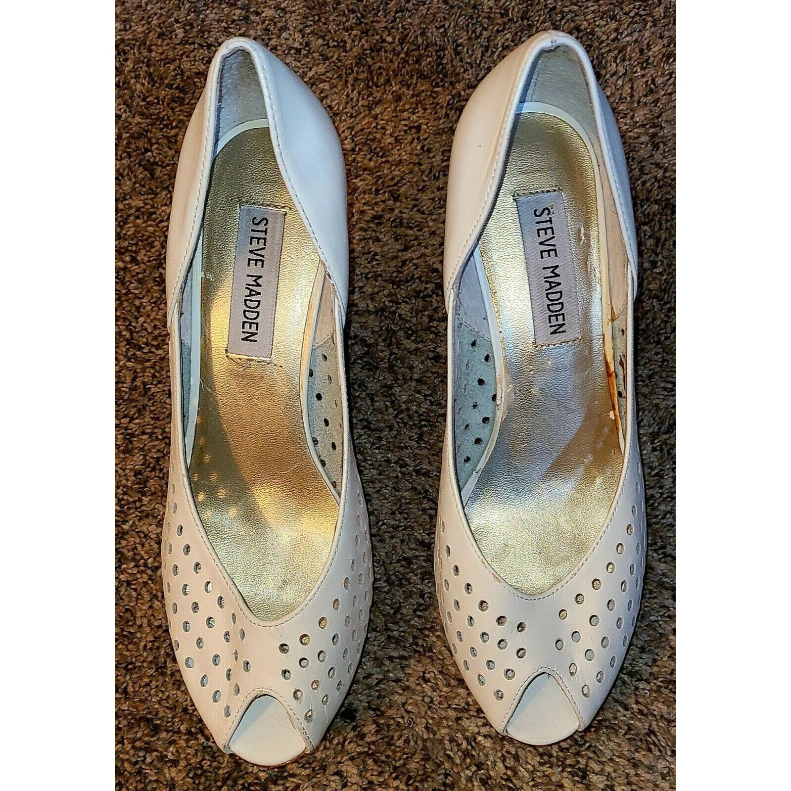 Steve Madden Women's Shoes Sz 7B Pinhole Peep Toe Wedge Shoes White leather