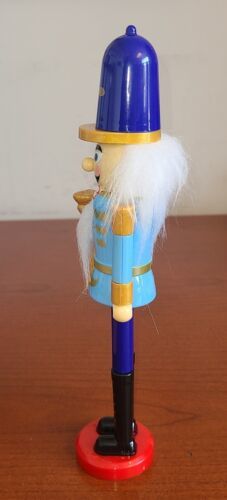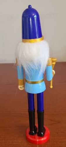 Christmas Nutcracker 9 inch tall With Horn Holiday Christmas Plastic Blue