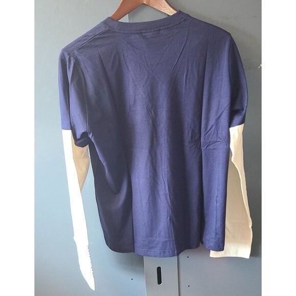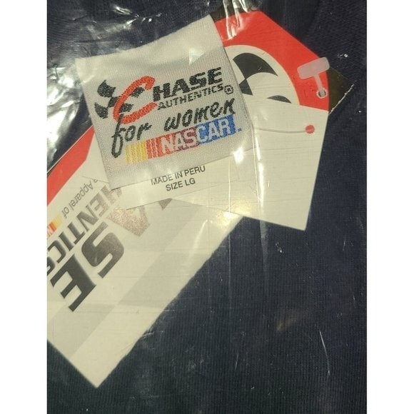 This is a women's long sleeve layered tee shirt with Jeff Gordon's number 24 and the Chase brand logo. The shirt is blue and in size large. It is designed for fans of NASCAR and auto racing, specifically those who support Hendrick Motorsports. The shirt is a great addition to any fan's collection of NASCAR merchandise and apparel.