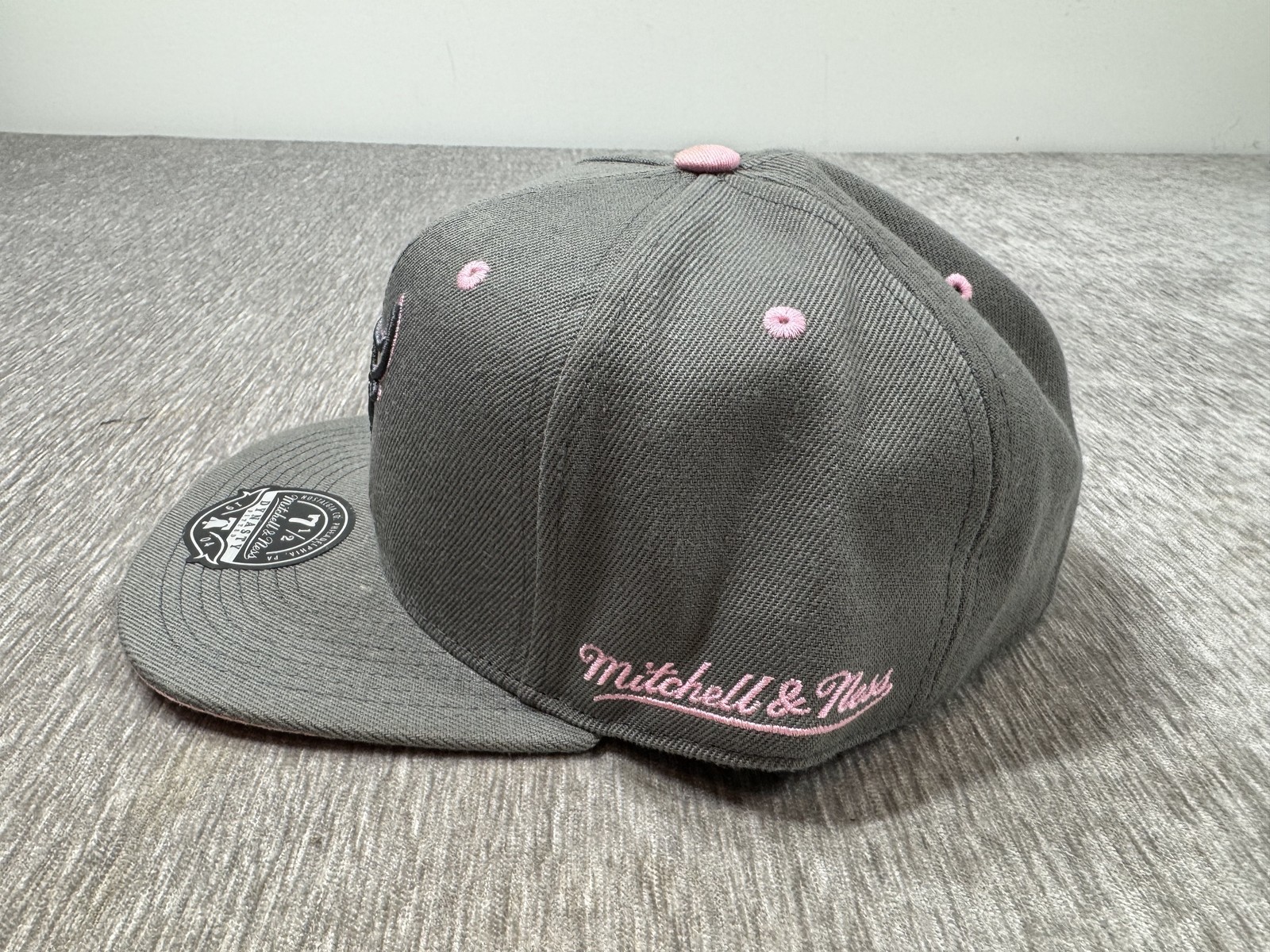 Pink underbrim, black sweatband with Mitchell Ness taping