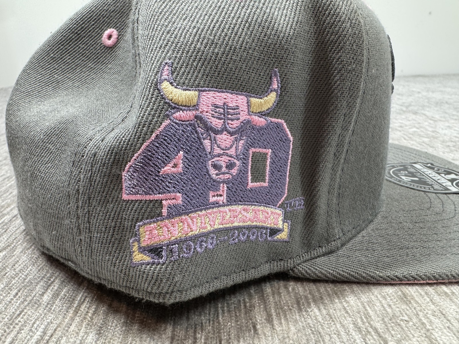Chicago Bulls Hat Cap Fitted Mens 7 1/2 Gray Pink NBA Basketball Anniversary