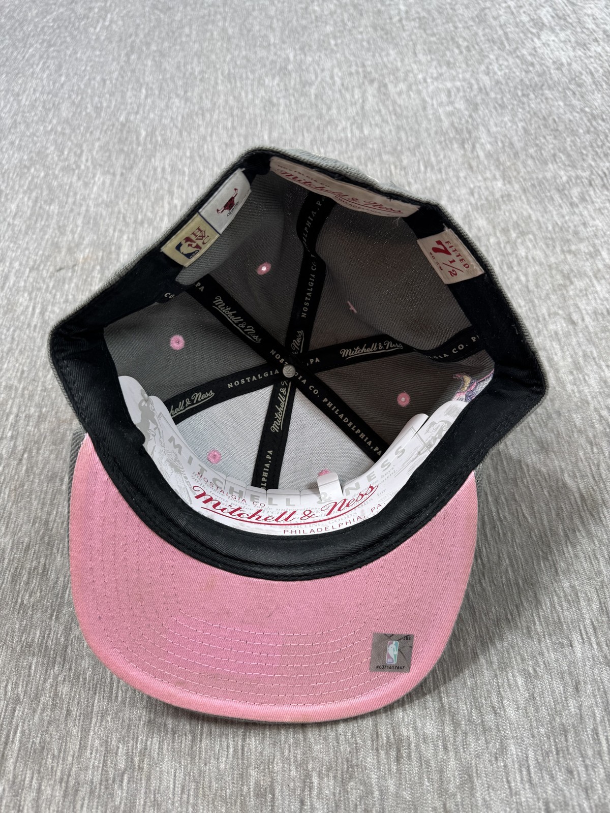 Chicago Bulls Hat Cap Fitted Mens 7 1/2 Gray Pink NBA Basketball Windy City
