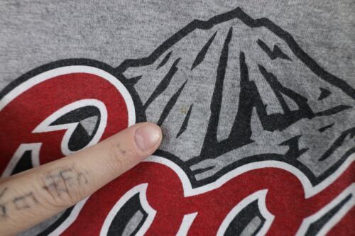 Stain front top. Armpits discolored. Graphics faded. Color faded