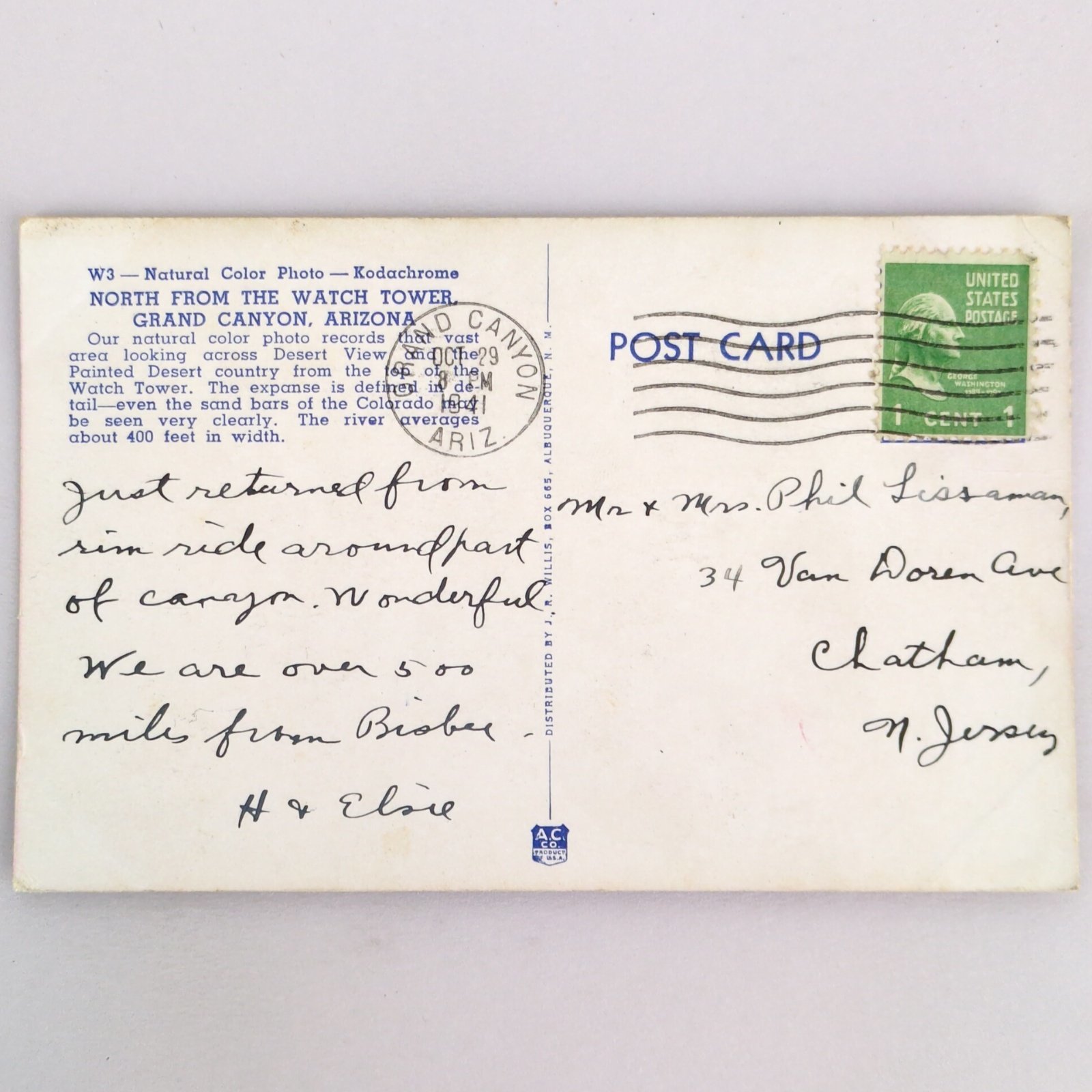 North From The Watch Tower Grand Canyon Arizona 1930s Postcard 1941 PC AZ RPPC