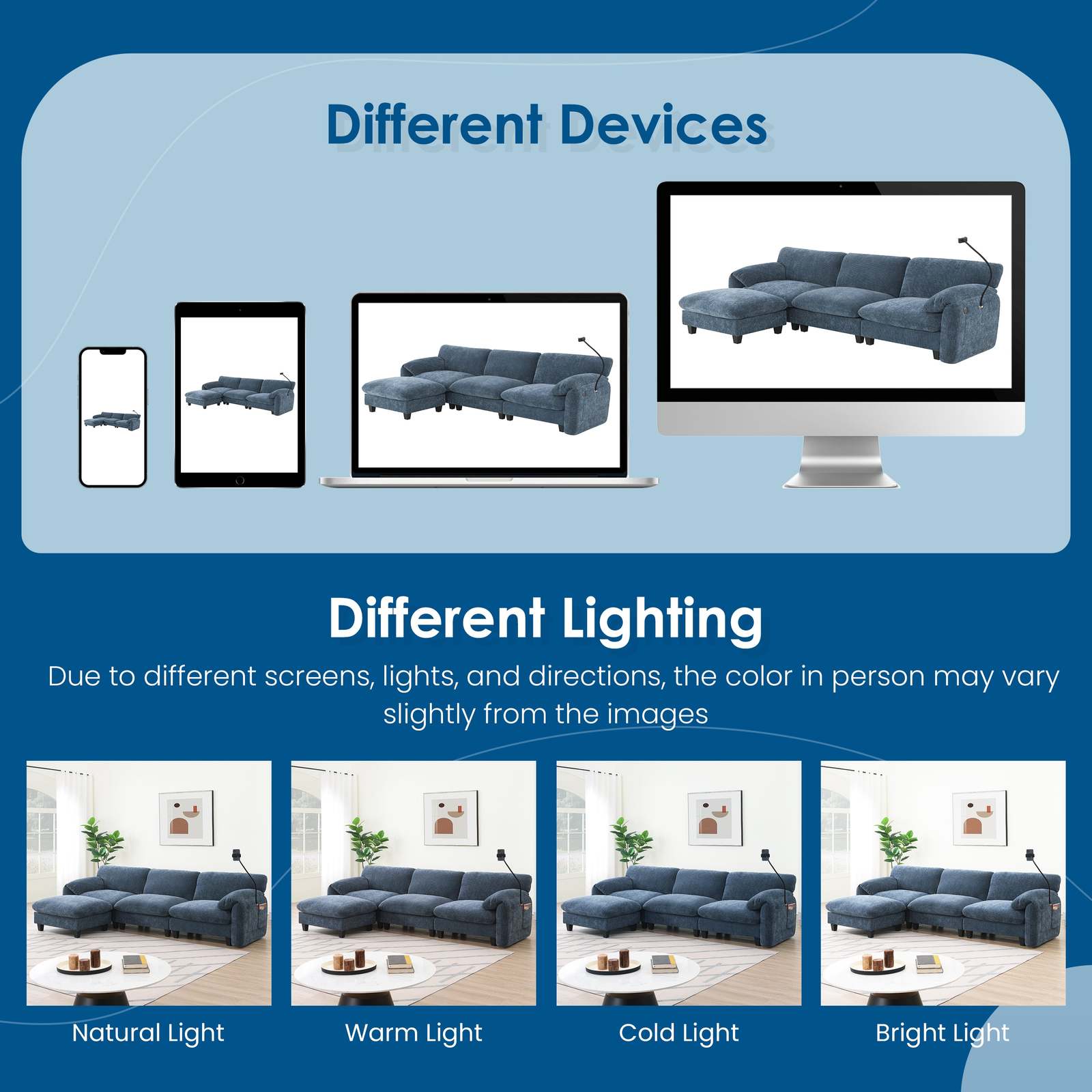 108" Modular L-Shape Sectional Sofa, Wide Seat, USB, Storage Ottoman