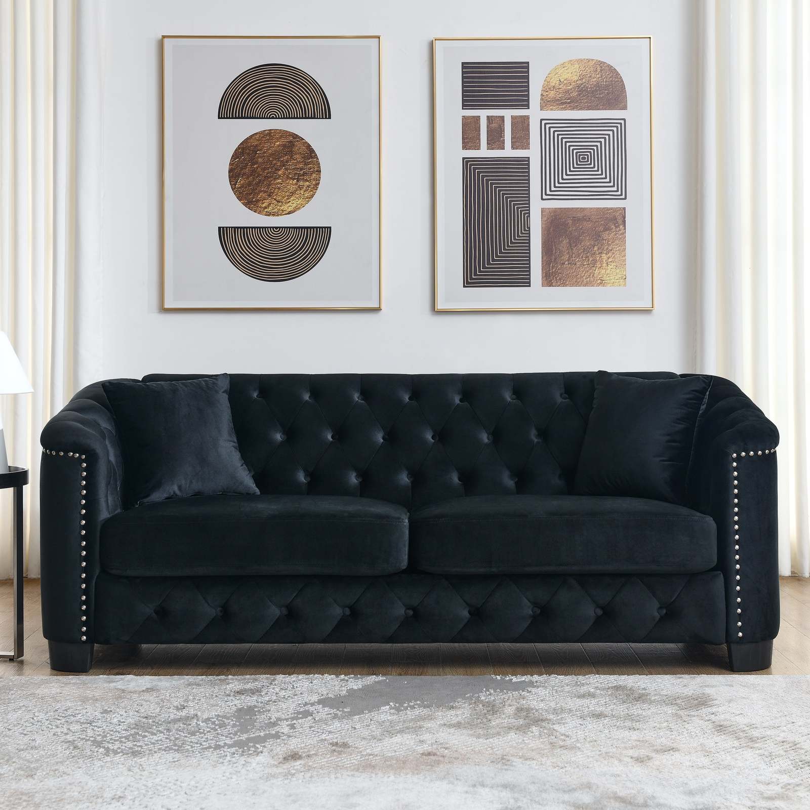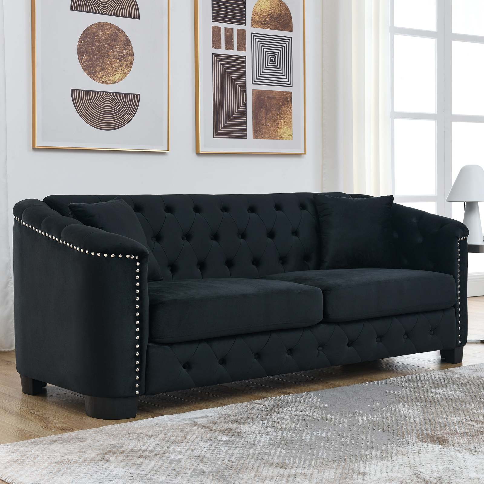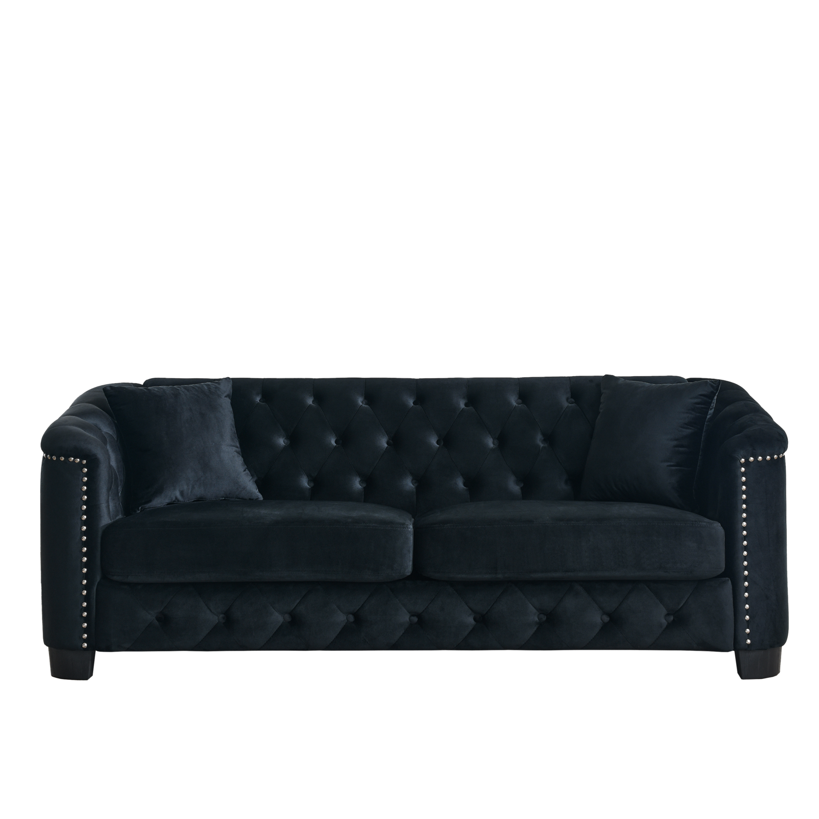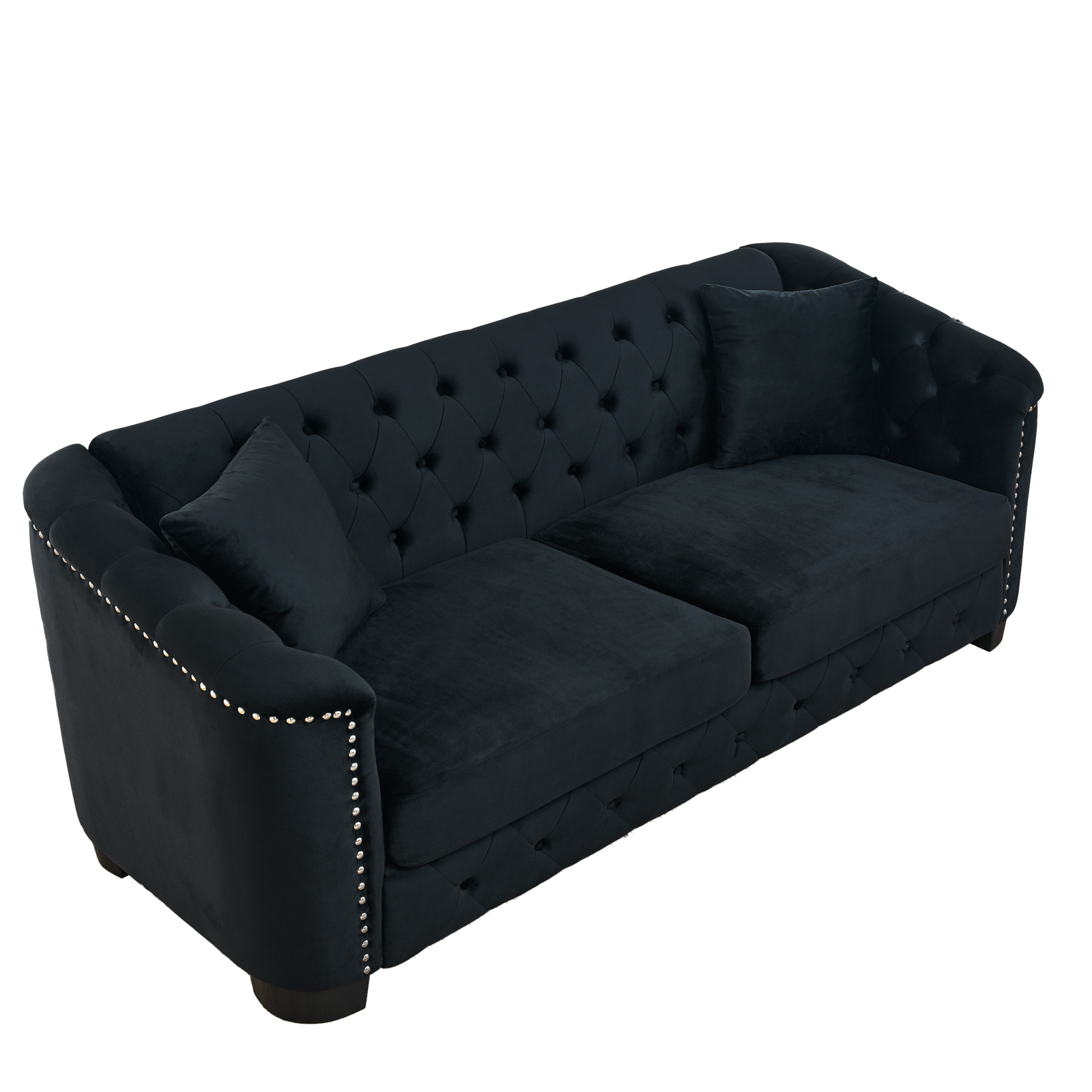 Carton quantity: 4pcs. Product Name: three person sofa. Size: please refer to the picture. Detailed Size: please refer to the picture. Packing size: please refer to the description. Package weight (lb): please refer to the instruction. Product weight (lbs): please refer to the description. Does this product include pillows: two pillows. Weight capacity: 250 lbs/seat. Assembly Required. Required (see instructions). Fabric Material: Velvet. Frame Material: Pine + Eucalyptus + Plywood. Seat Structure: Silk + Foam + Spring Pack. Sofa feet:plastic feet. Place of Origin: China. Note: Manual measurement, there may be some reasonable error. All pictures are taken according to the actual sample, due to the light or monitor, there may be a slight color difference.