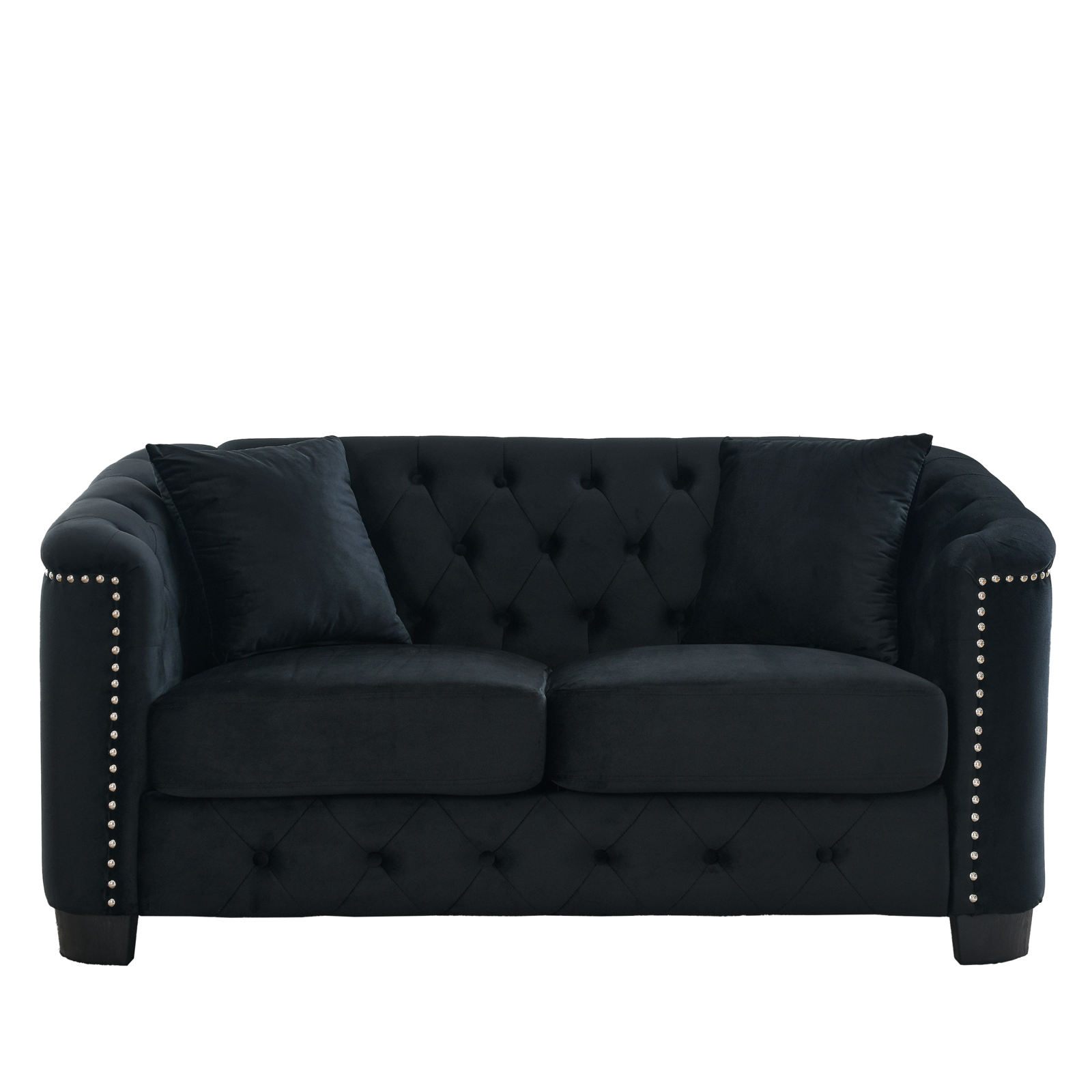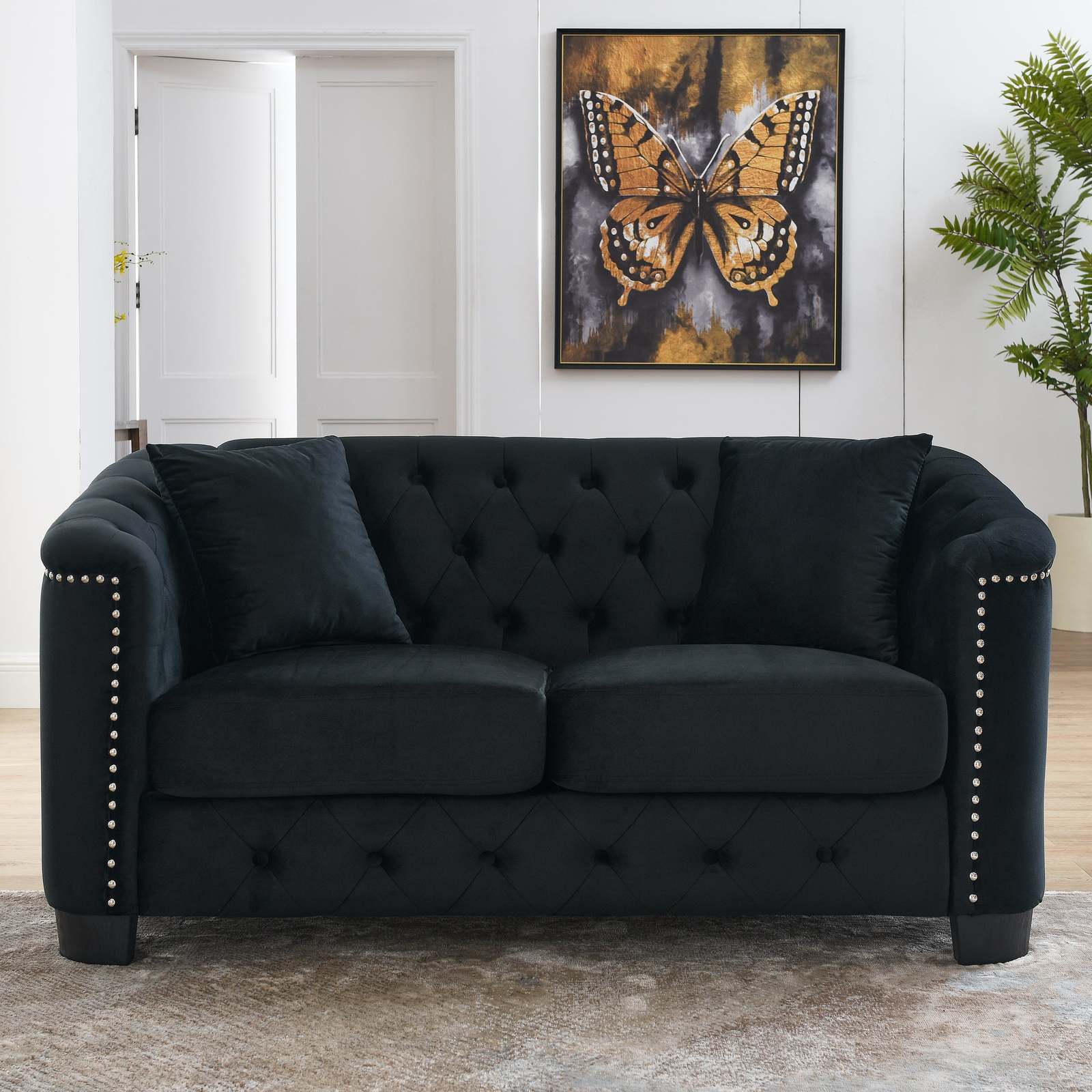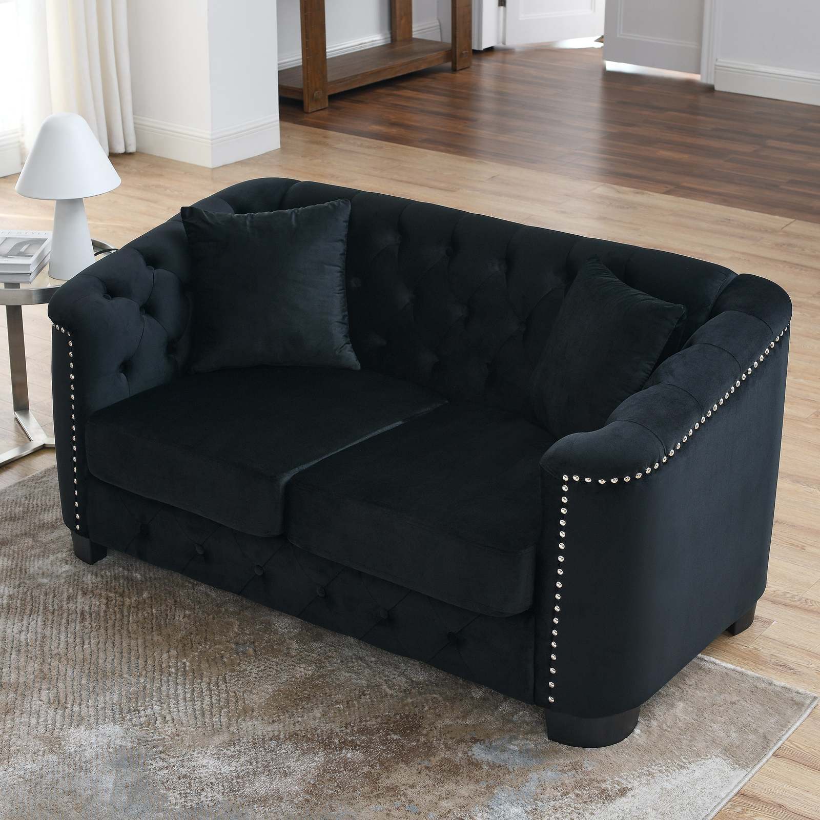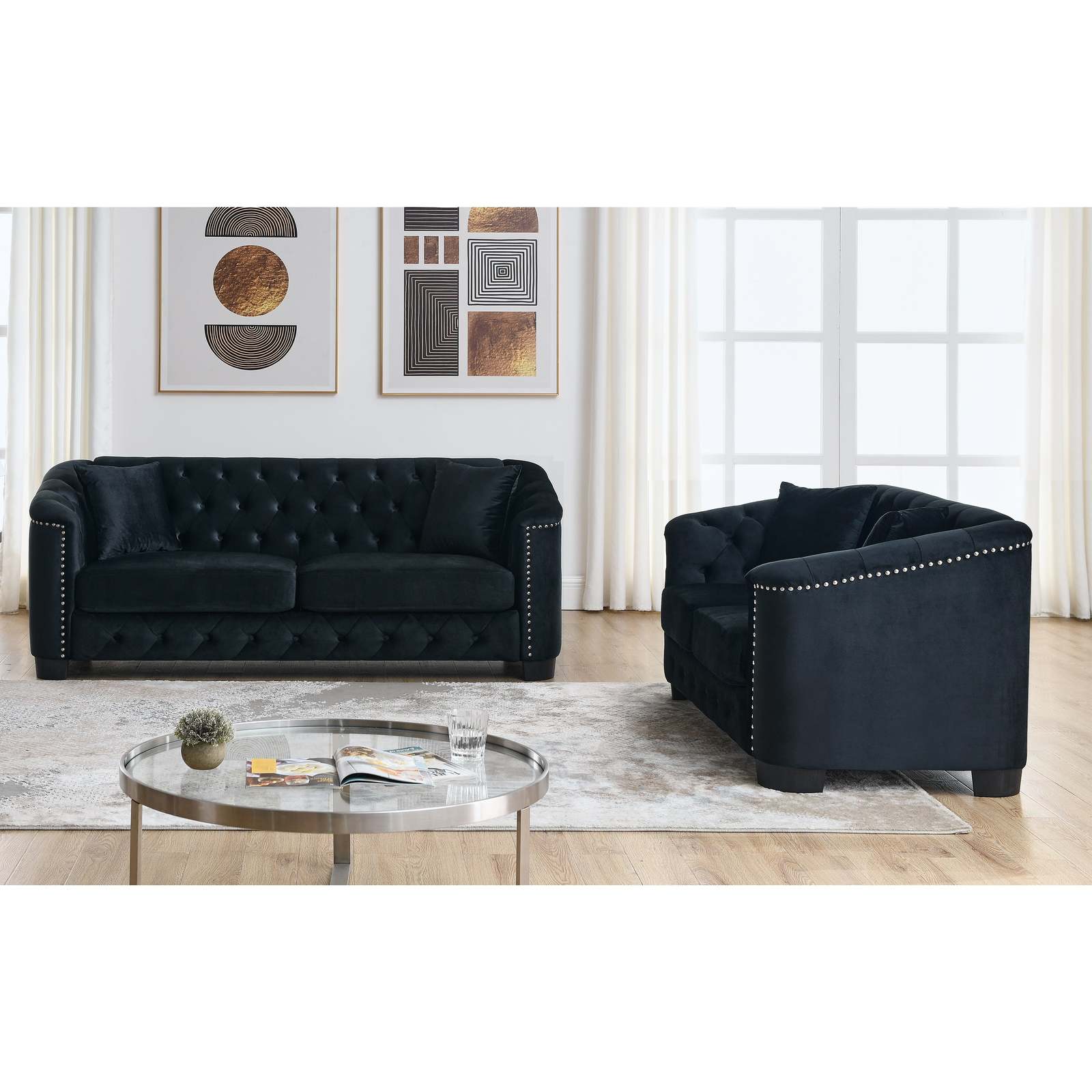 Velvet Black 3+2 Seater Combination Sofa Set for Living Room