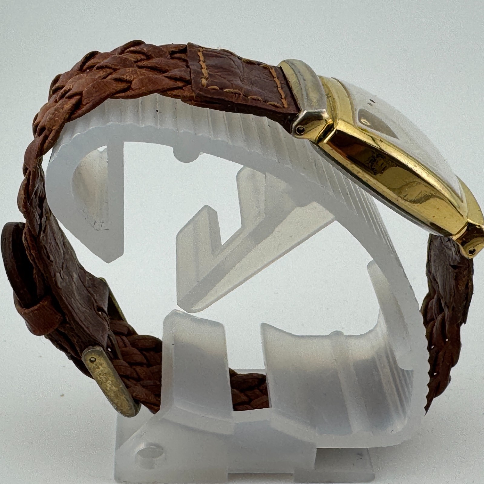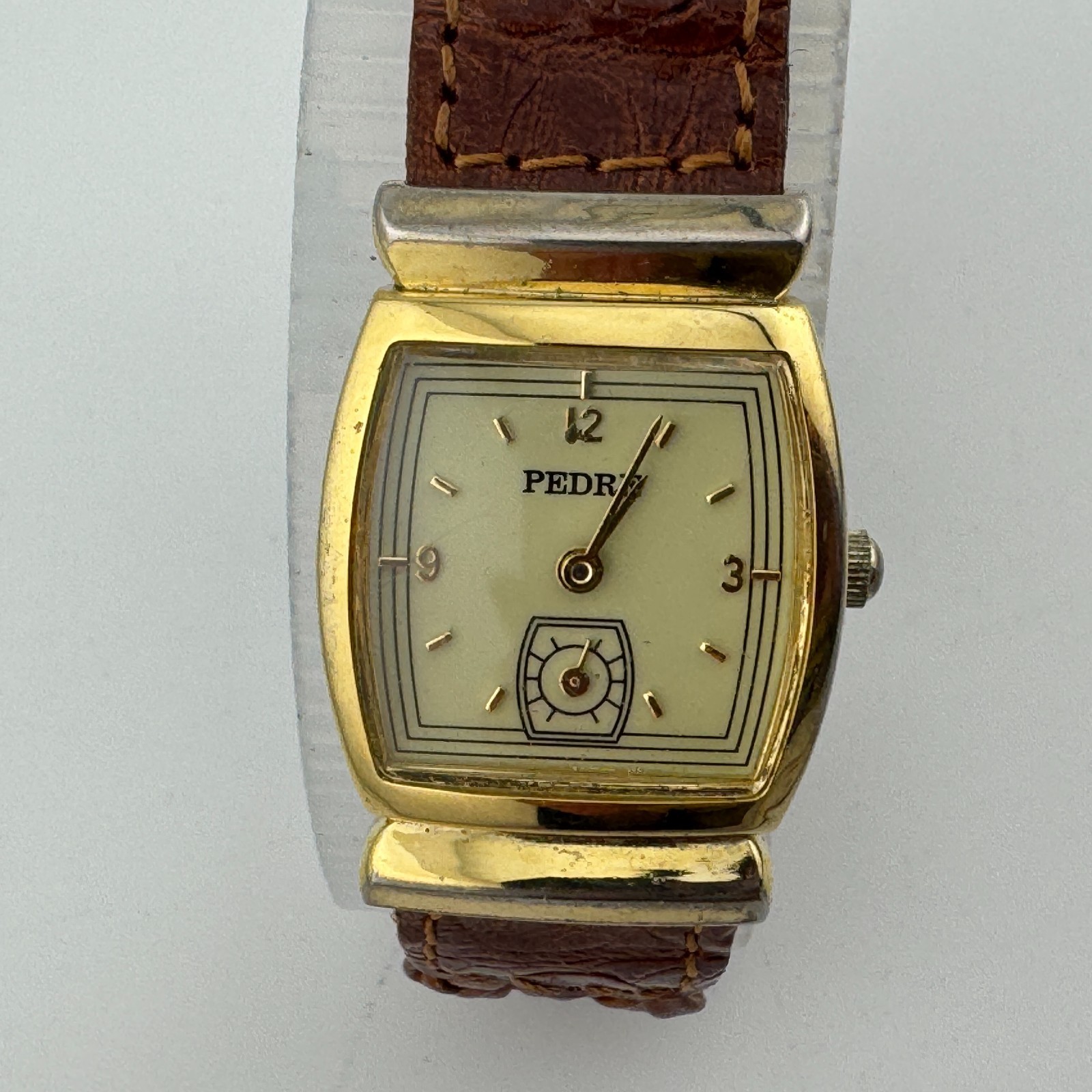 VTG Pedre Quartz Watch Women Gold Tone Barrel Small Second Leather New Battery