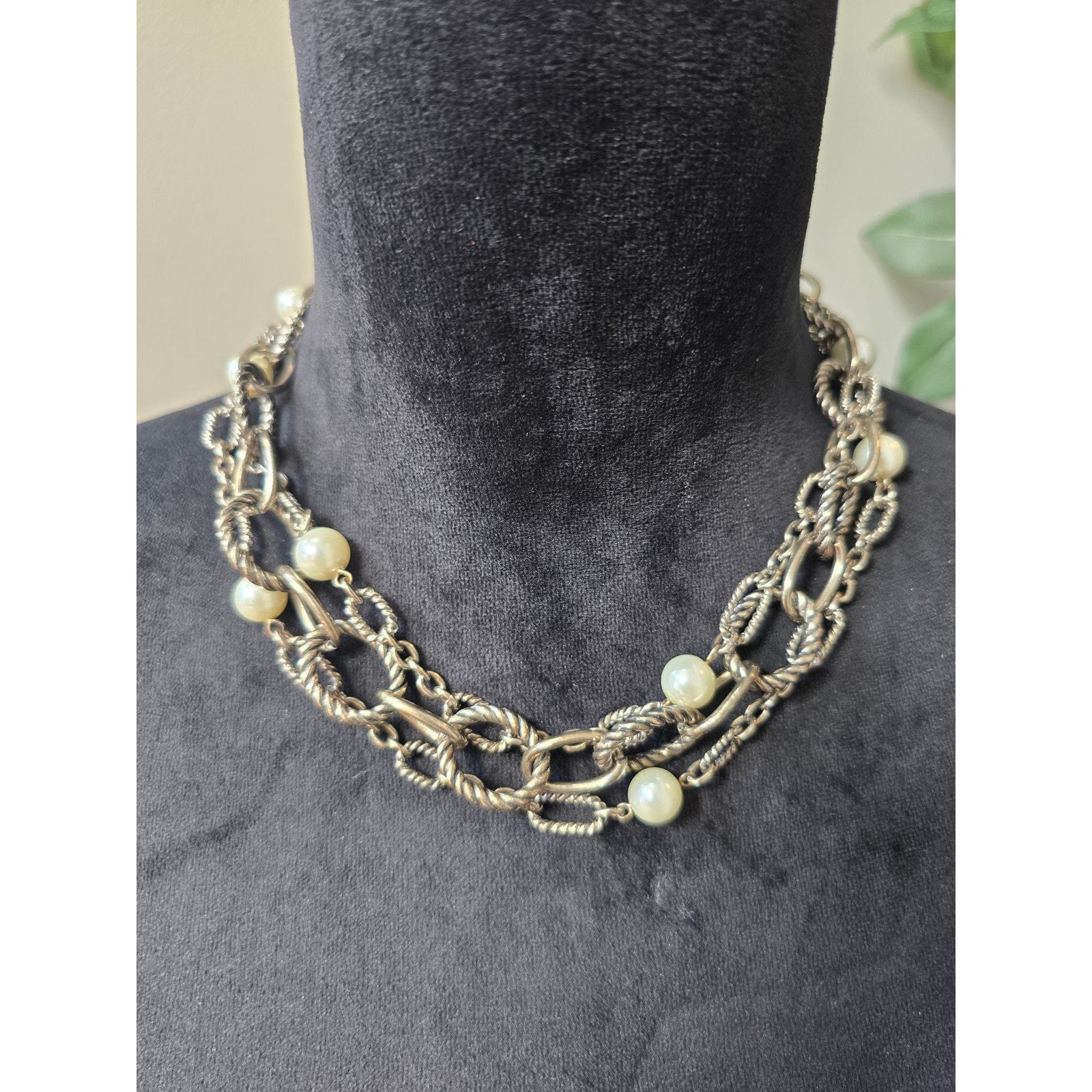 Women's Chunky Rope Chain Necklace With Faux Pearls And Toggle Ring Lock