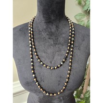 Women's Long Beaded Necklace With Black Crystal Gold Pearl And White Bead Design