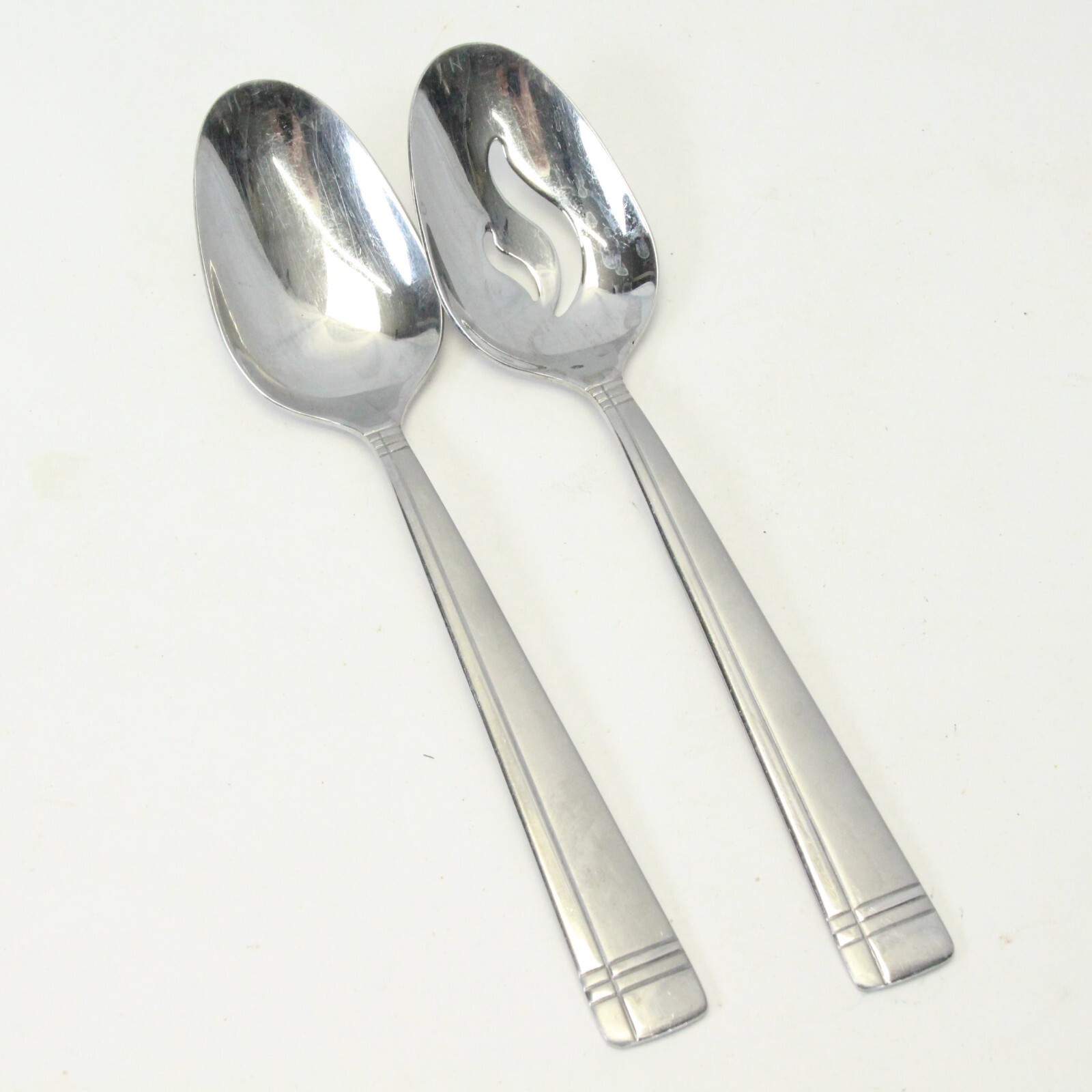 Oneida Amsterdam Serving Spoons Pierced and Solid 8-3/8" Stainless Lot of 2
