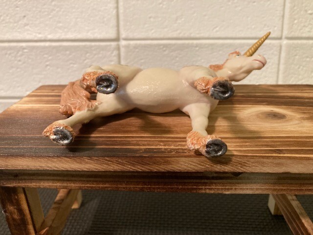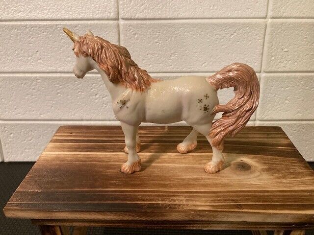 Papo UNICORN White Pink Fantasy Horse Figure 2010 Gold Sparkly Stars Hearts; great condtion.