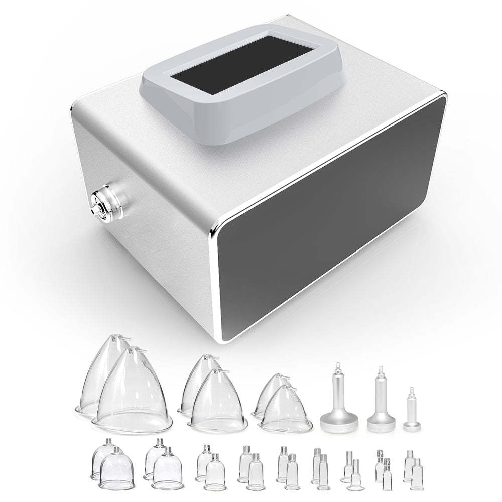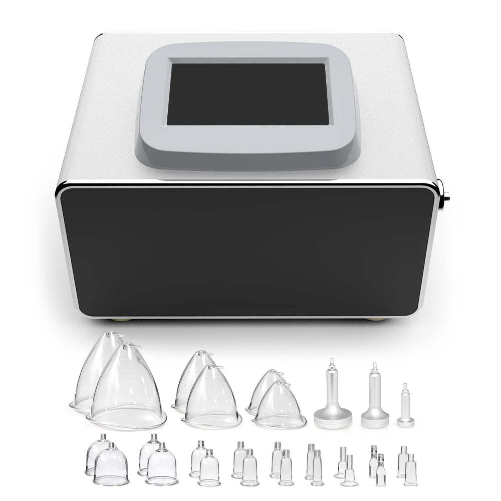 Designed for professional and personal use, this system features adjustable suction settings for customized treatments. The vacuum cups create targeted negative pressure, stimulating blood flow and lymphatic detoxification, helping to improve skin elasticity and contour definition.