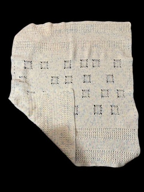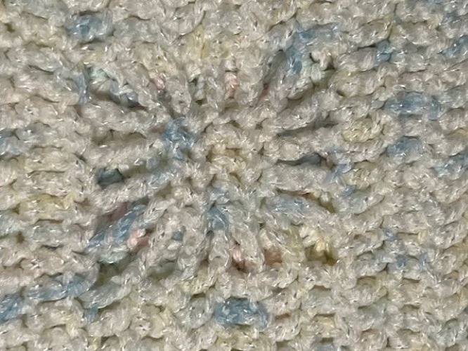 VTG Hand Crocheted Baby Blanket – Late 1990s to Early 2000s – Shimmering Pastel
