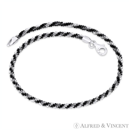 2.5mm Roc Link 2-Tone Spiral .925 Sterling Black & Silver Italian Chain Anklet