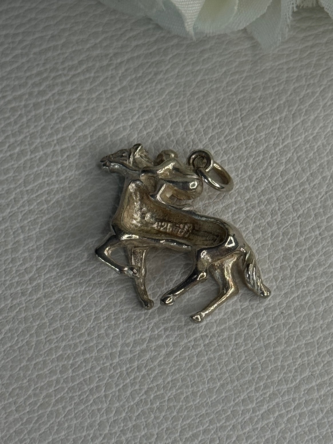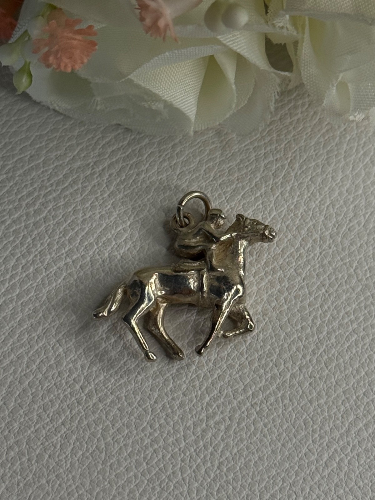 HORSE & JOCKEY LUCKY RACING RACE CHARM PENDANT 925 STERLING SILVER LENGTH 1 INCH
