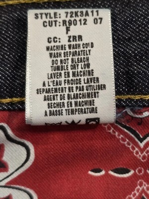Please see all photos. Note photos showing small hole in denim on outside of left leg pointed out by ruler. The product is a pair of VTG Lucky Brand Dungarees Men's Size 34 (3534) Gene Montesano Jeans made in the USA. These vintage denim jeans feature a mid-rise, straight fit with a 5-pocket design and button fly closure. The dark indigo color and solid pattern make them versatile for all seasons, while the breathable fabric and comfortable fit provide a stylish and comfortable option for everyday wear. Made with cotton denim, these Lucky Brand dungarees are a classic piece of Americana with a retro vibe.