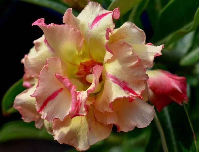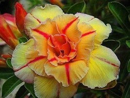 Adenium Light Orange Double Petals Dark Red Stripes Desert Rose 4 PCS Seeds