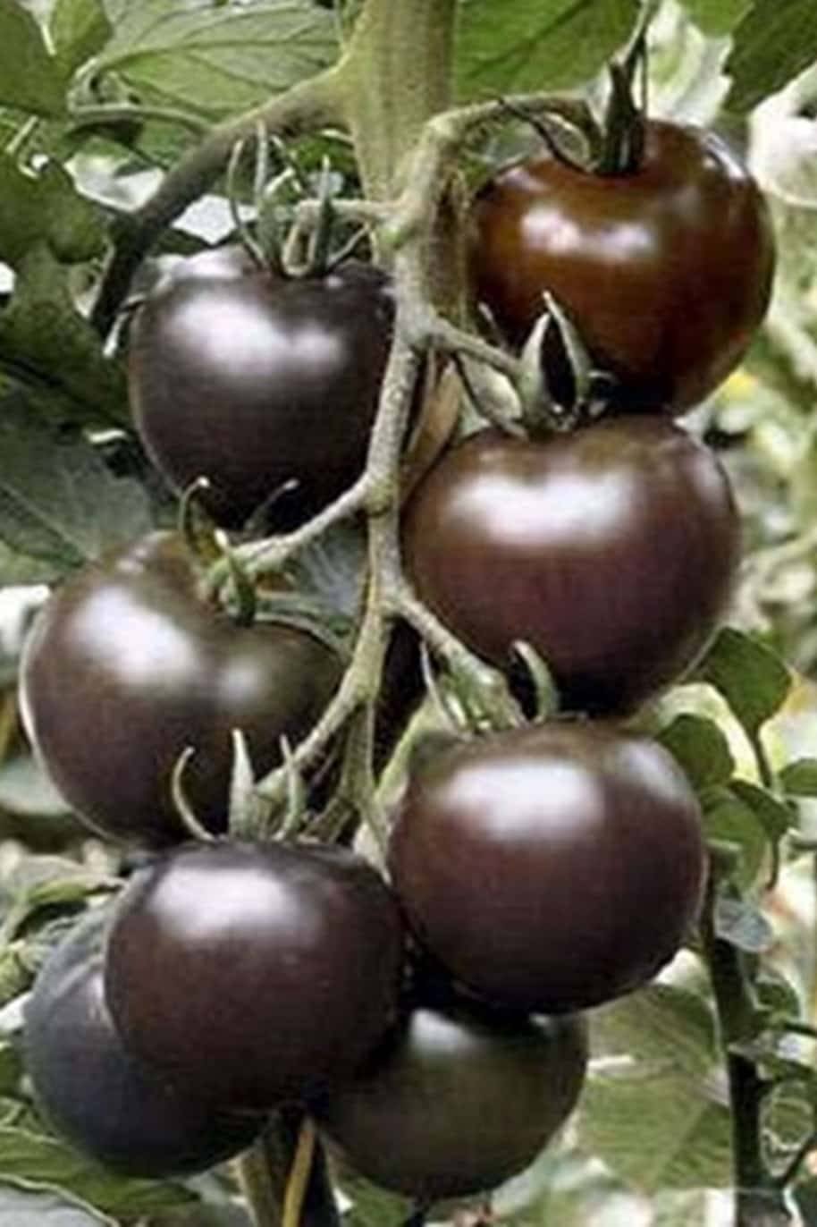 'Black Pearl' Bright Black Round Cherry Tomato Seeds 20 Pcs