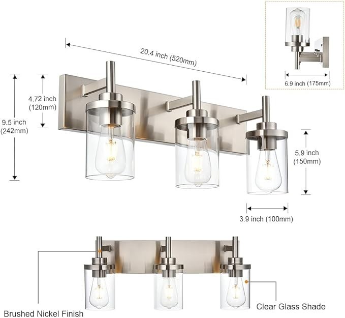 Elegant Design:Bathroom Vanity Lighting Fixture in Superb craftsmanship and perfect texture.Noble and vintage style, the premium transparent bubble glass lampshade can brings more perfect light, create a warm and soft atmosphere and highlight your unique taste. The perfect finishing touch above a sink or vanity.