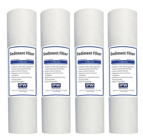 Product description: IPW Industries 5 micron water filter 10 x 2.5 replacement cartridge 4-pack delivers premium whole house water filter replacement performance for comprehensive sediment water filter applications. Each whole house sediment filter cartridge features 100% polypropylene construction with coreless design, providing economical whole house water filtration solutions for standard 10" housings. These sediment filter cartridge units effectively lessen fine sediment, sand, silt, rust, and precipitated scale from municipal and well water sources, making them ideal sediment filters for well water systems. Compatible with Dupont WFPFC5002 and Pentek DGD series, these reverse osmosis filter replacement cartridges serve as essential sediment pre-filter protection for reverse osmosis water filter systems and whole house ro system installations. With 6-12 months filter lifetime depending on water quality, these water filters whole house compatible cartridges maintain consistent whole house water filter performance throughout their service life. Perfect for diverse commercial applications including ice machines, film processing, beverage systems, coffee equipment, analytical systems, and wineries, these 2.5 x 10 water filter cartridges deliver reliable whole home water filteration solutions. Backed by IPW Industries' 17 years of expertise and Water Quality Association membership, these whole house filter cartridge units provide professional-grade water sediment filter performance for residential and commercial wholehouse water filter system.