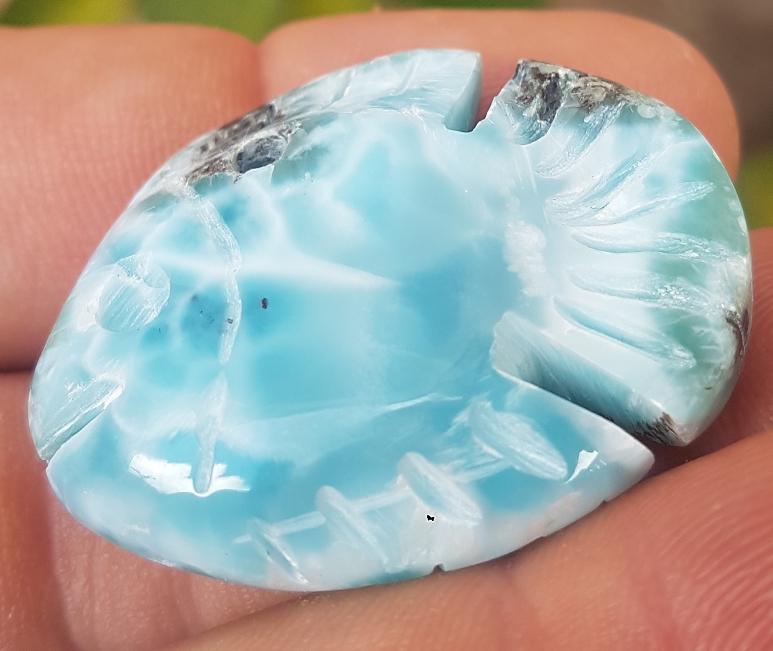 NATURAL blue larimar handcarved FISH Gemstone pendant 20 grams jl-5