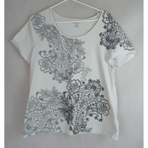 Croft & Barrow Stretch White Shirt With Black & Gray Floral Design Size XL