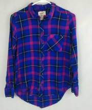 Arizona Jeans Co Women's Boyfriend Pink & Blue Flannel Shirt Size Small