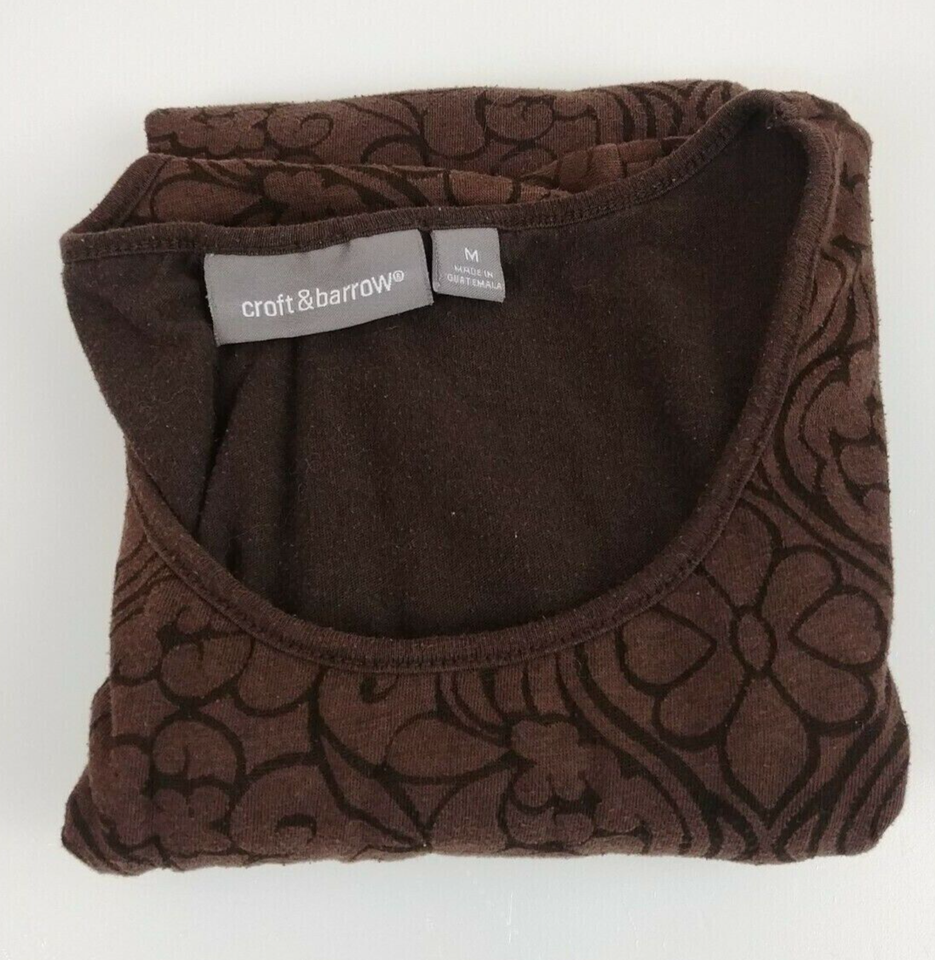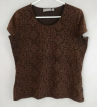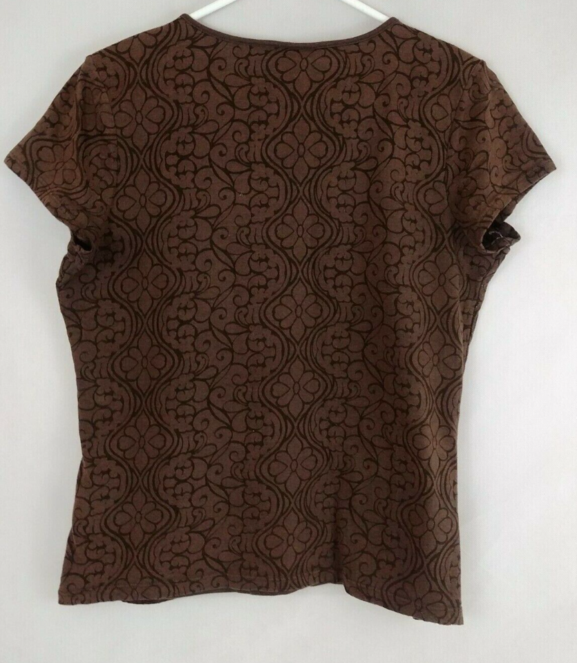 Croft & Barrow Cap Sleeve Shirt Brow With Floral Design Size Medium
