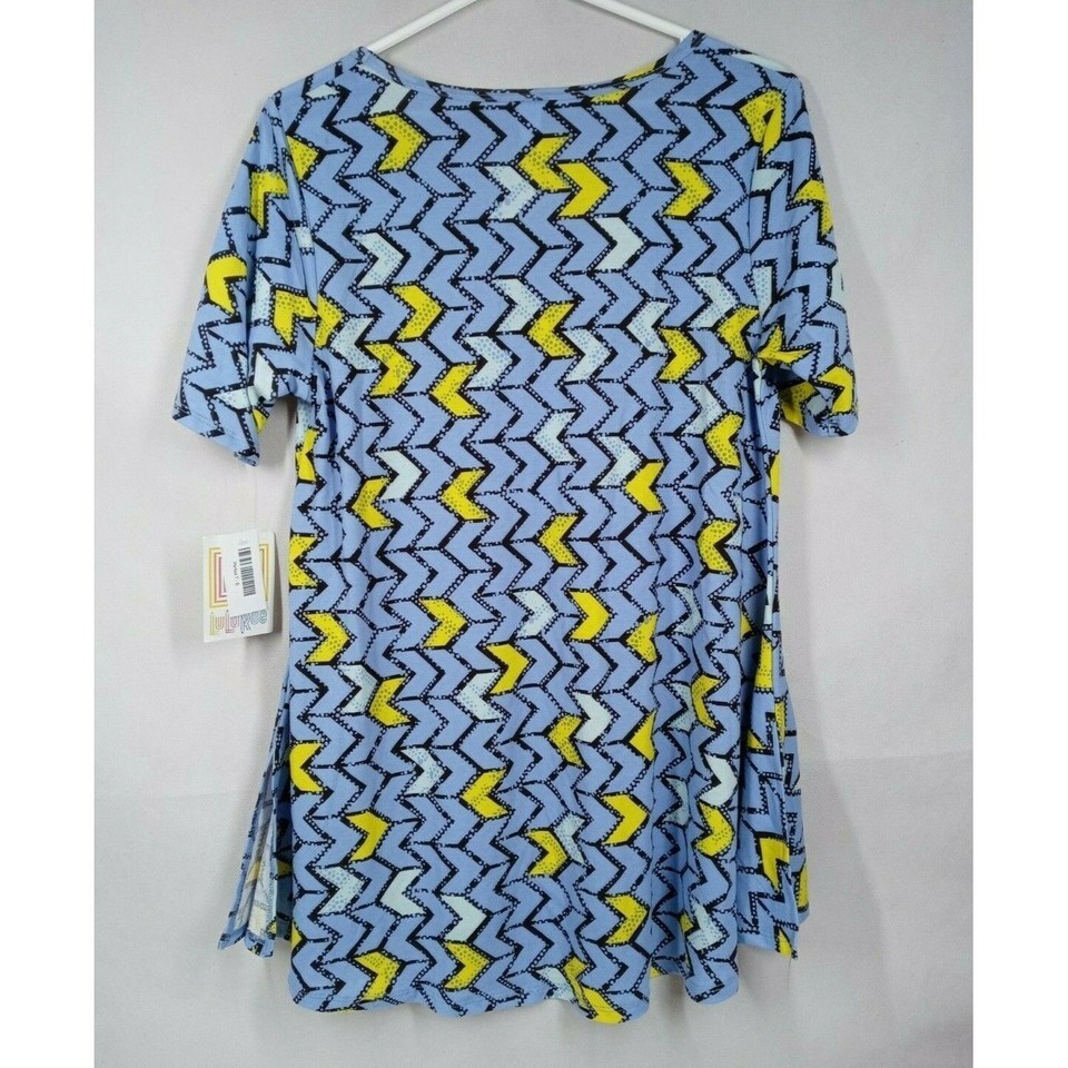 NWT Lularoe Perfect T Blue & Yellow With Chevron Designs Size Small