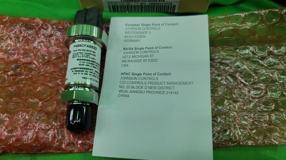 Johnson Controls P499CFAB523C York 025-29151-001 Pressure Transducer