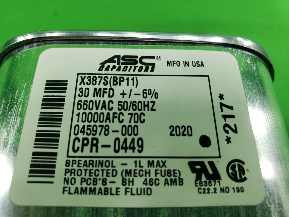 ASC Capacitor X387S (BP11)-660VAC 50/60HZ, 30 MFD