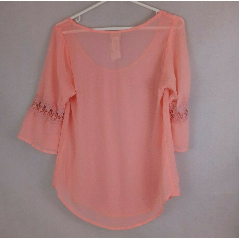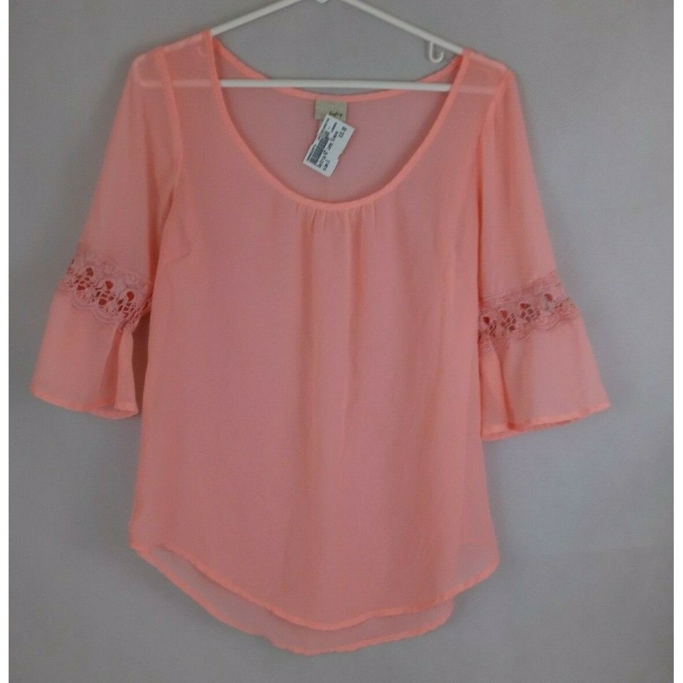 This is for a NWT Daytrip Women's Sheer Blouse With Lace Floral Trim Sleeves Size Small.