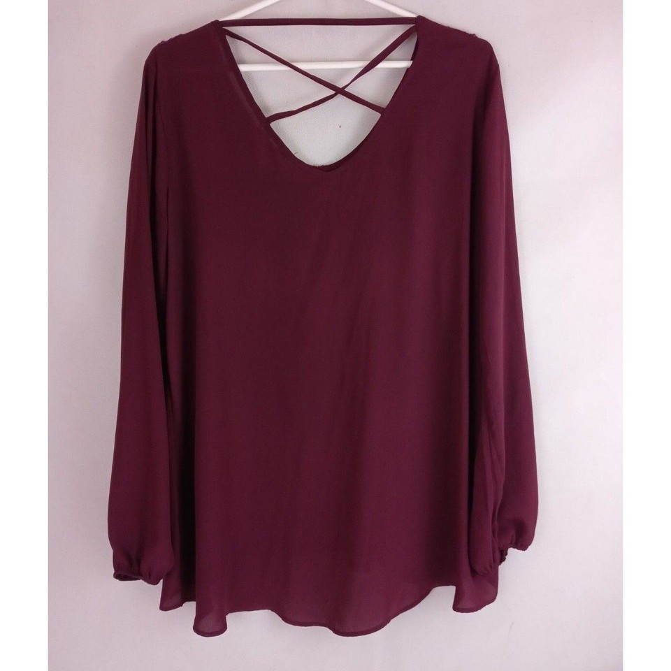 Charming Charlie Women's Burgandy/Maroon Blouse With Metallic Embroidery Large