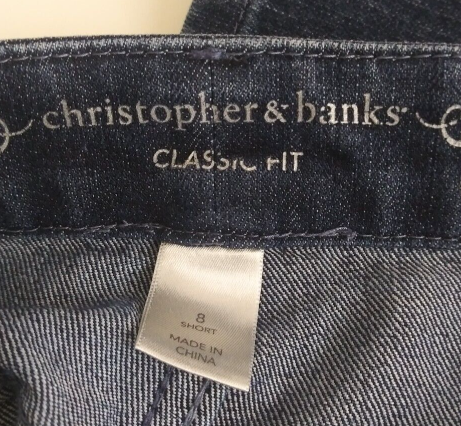 Christopher & Banks Classic Fit Pleated Distressed Bootcut Jeans Size 8 Short