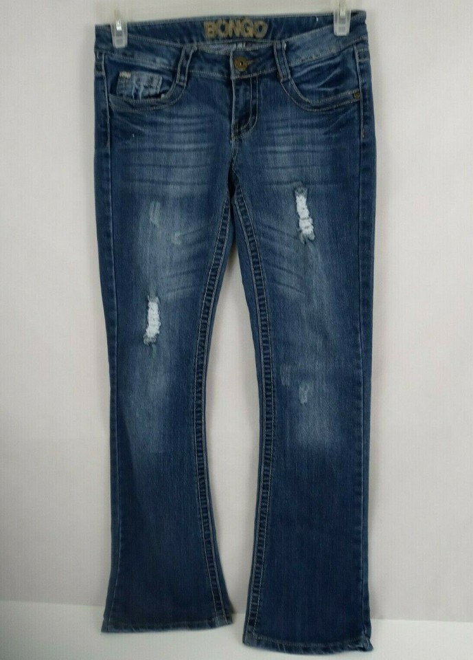 This is for a Bongo Distressed Studded Ripped Embroidered Whiskered Bootcut Jeans Size 3 28/30.