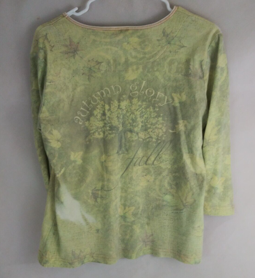 Studio Collection Women's Greenish Yellow Autumn Glory Fall Beaded Shirt Large added to cart.
