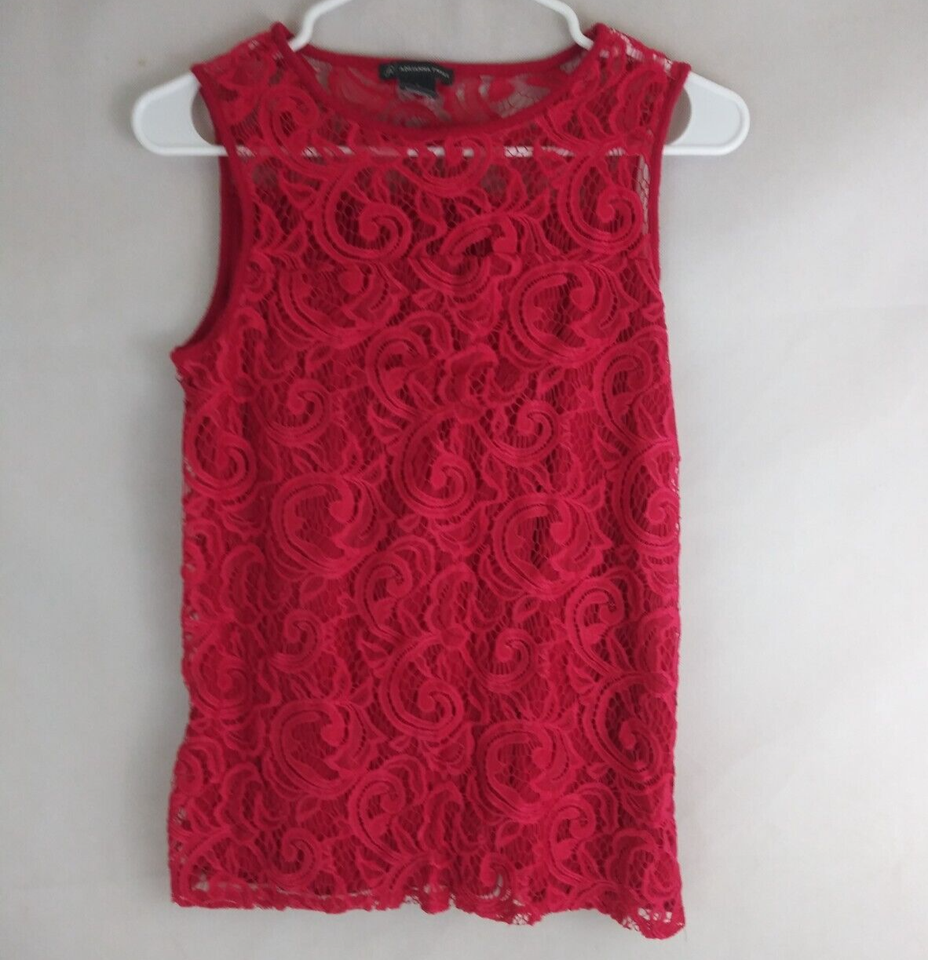 Adrianna Papell Women's Red Sleeveless Lace Front Lined Blouse Size Small