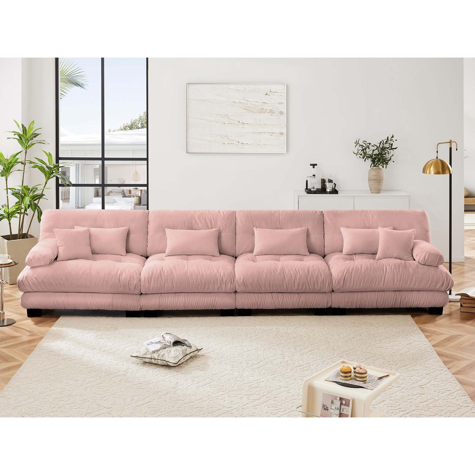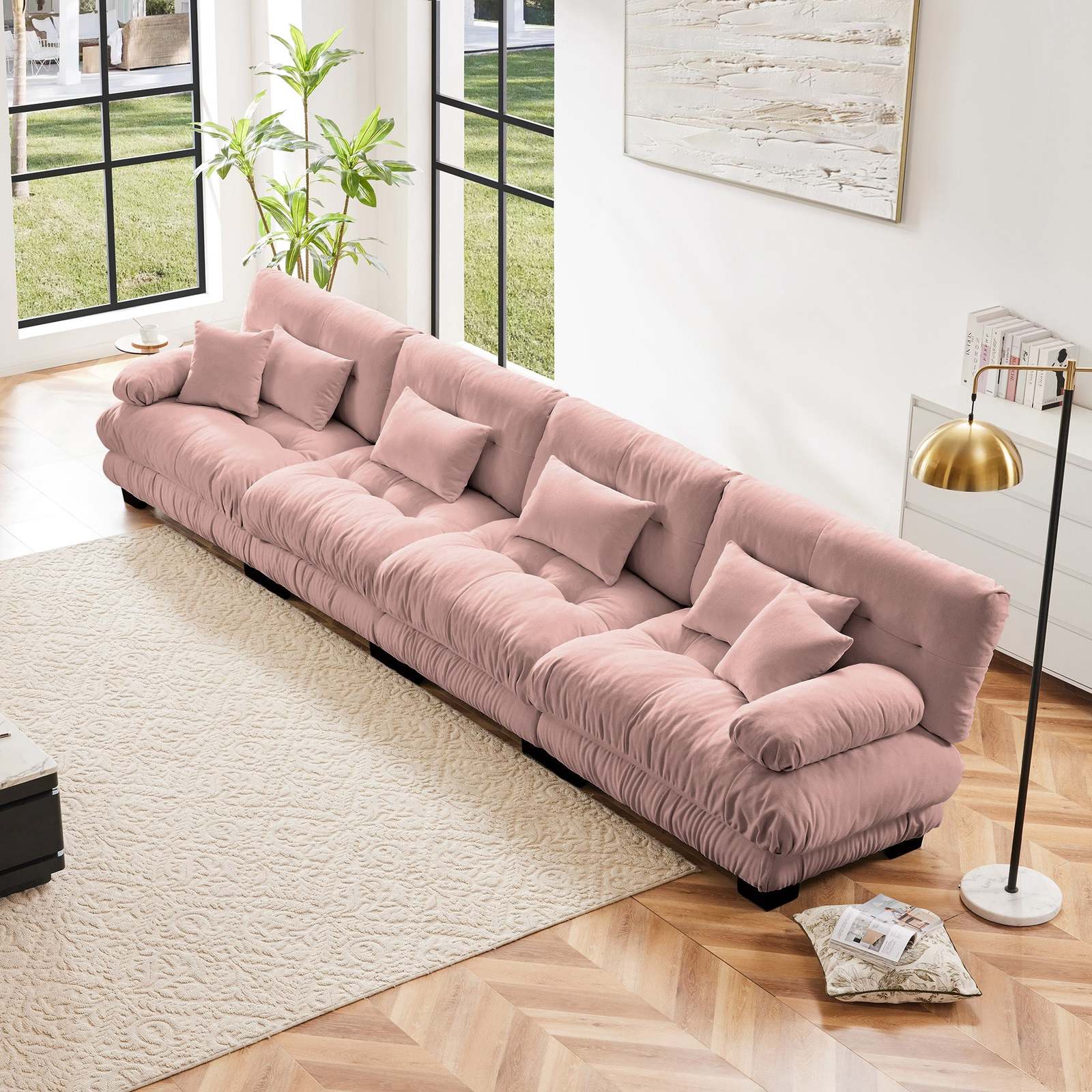 Pink Chenille 4-Seater Modular Sectional Sofa Couch - Deep Seat