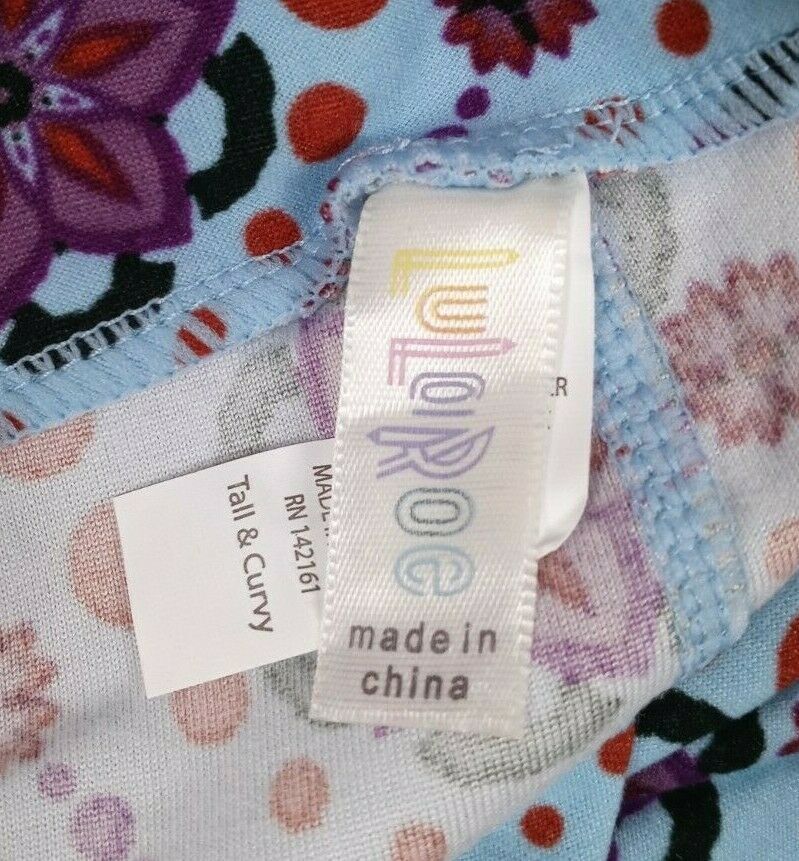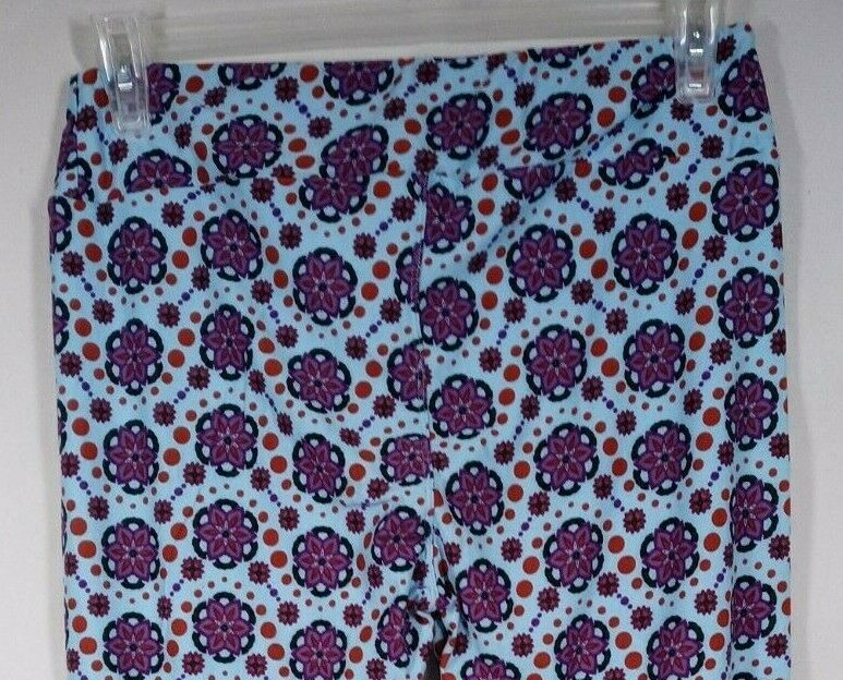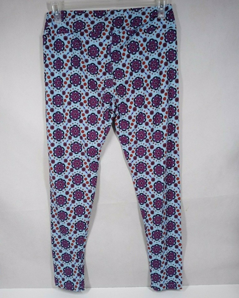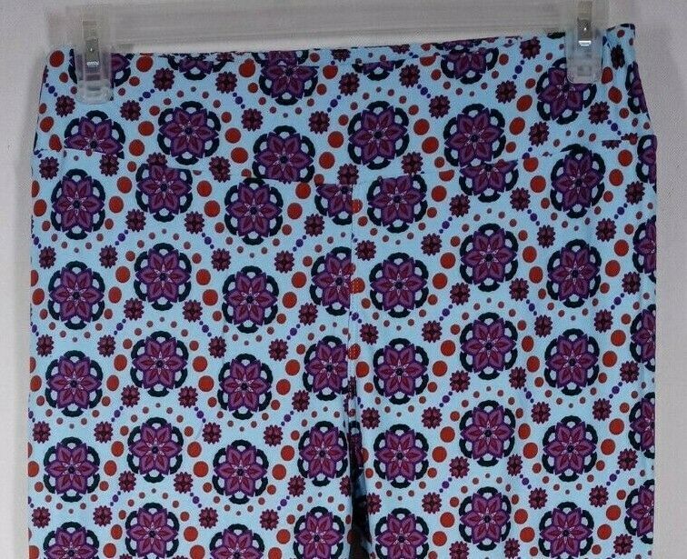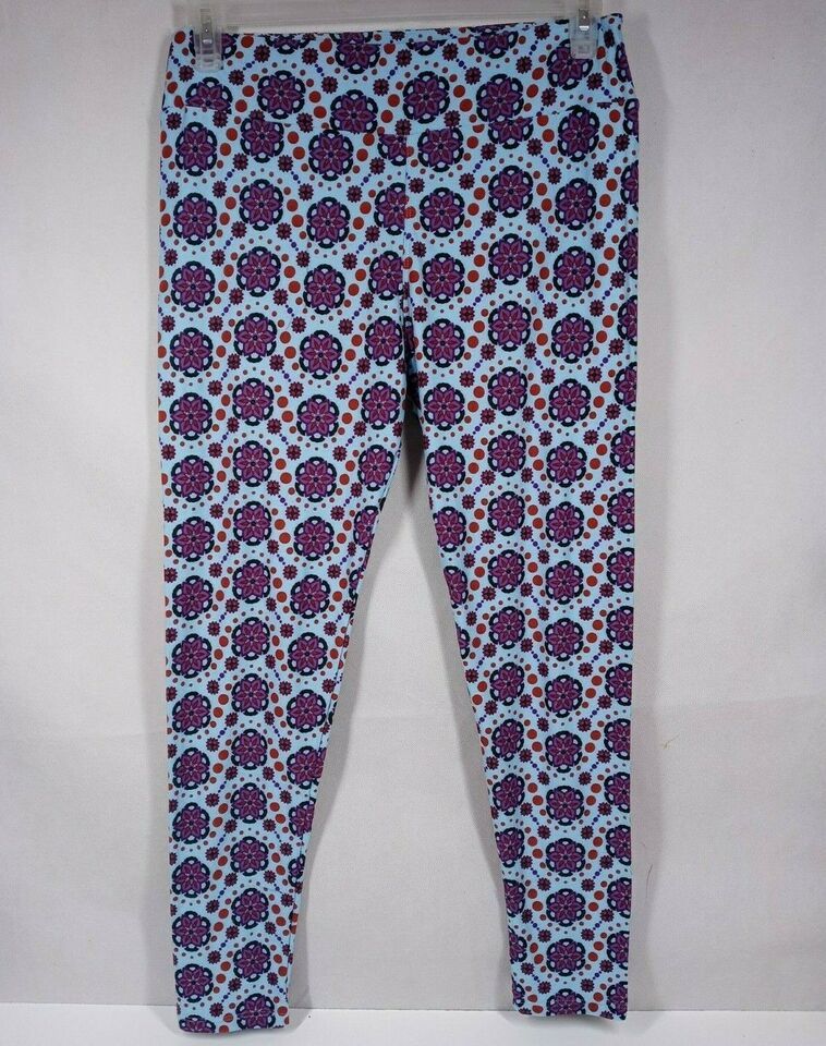 New LuLaRoe Tall & Curvy Leggings Lt. Blue With Purple & Red Floral & Dot Design