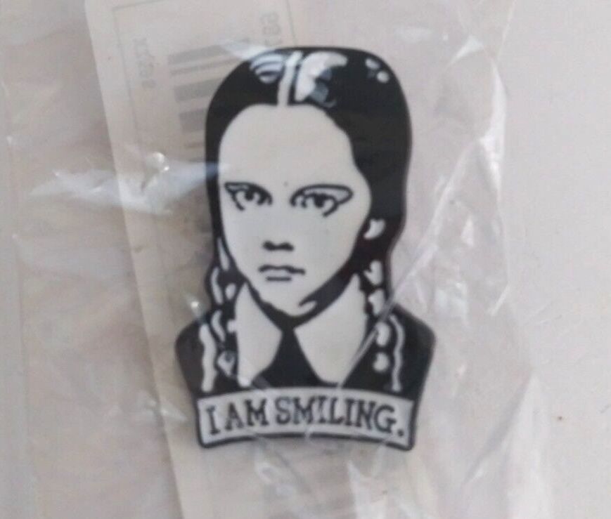 This is for a New Wednesday Adams I Am Smiling. Enamel Hat Lapel Pin.