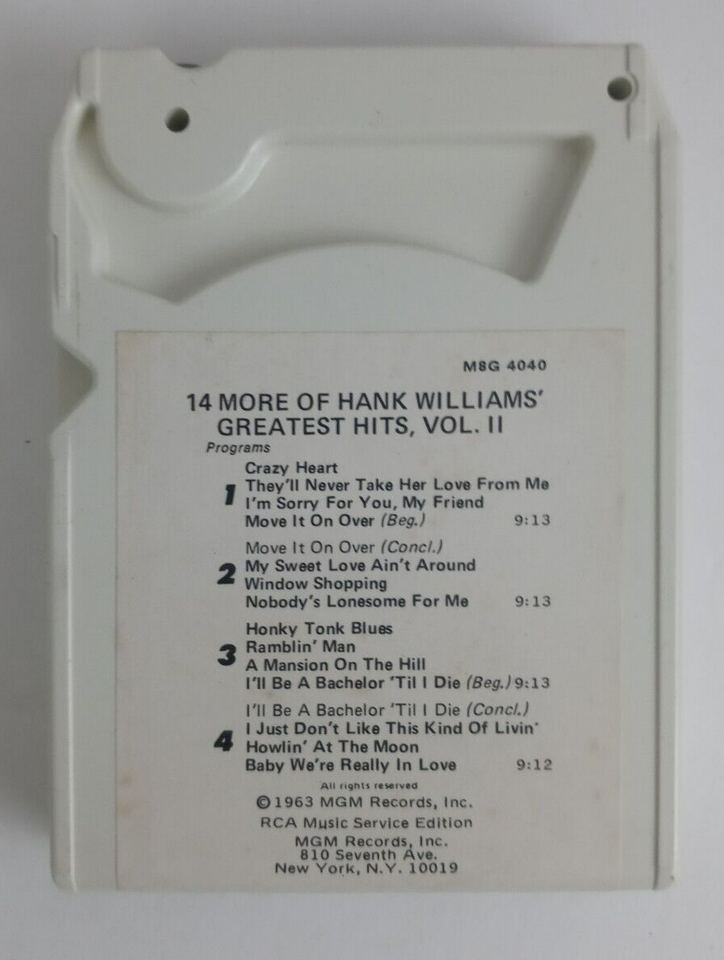 This is for a 14 More Of Hank Williams' Greatest Hits Vol. II 8-Track Tape MGM 1963.